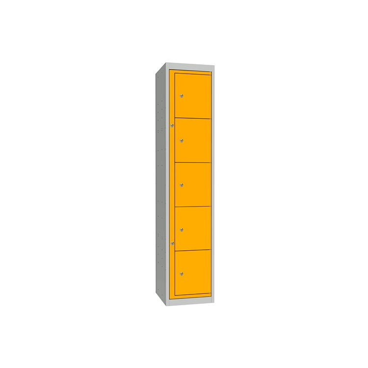 This is 5 Door No Steel Light Grey Yellow Storage Locker 1778 mm x 381 mm x 457mm manufactured by RS PRO. The manufacturer part number is 213-500. It contains 5 dedicated doors . It has a decent light grey, yellow colour. The product is made from highly stable and reliable steel. It has an external depth of 457mm. While its external height is 1778 mm. The product is 381 mm wide. In addition, it is vented no .
