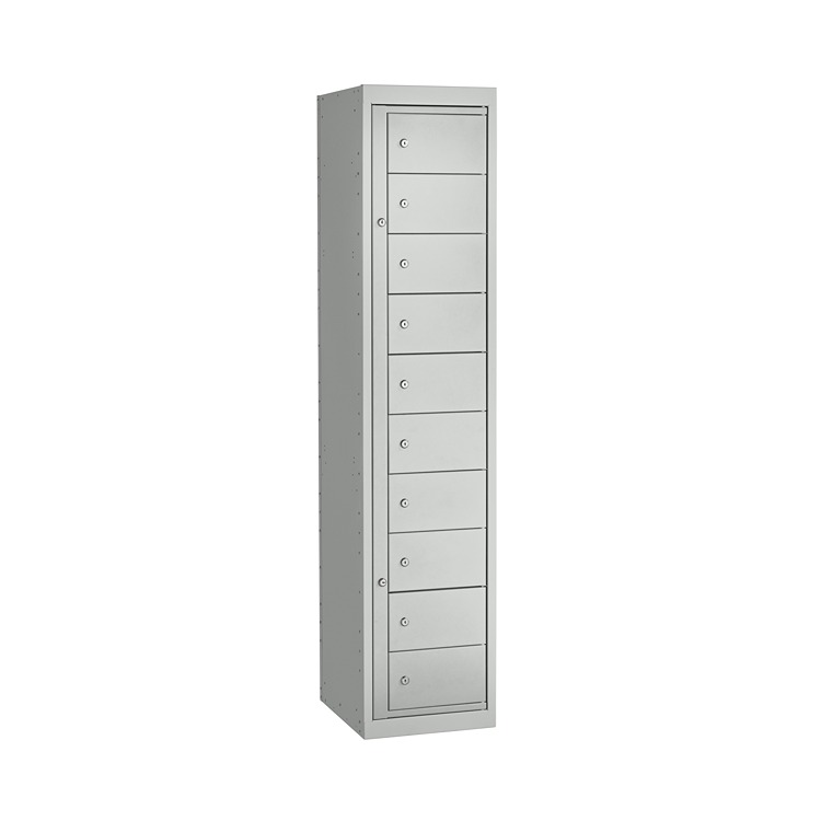 This is 10 Door No Steel Light Grey Storage Locker 1778 mm x 381 mm x 457mm manufactured by RS PRO. The manufacturer part number is 213-504. It contains 10 dedicated doors . It has a decent light grey colour. The product is made from highly stable and reliable steel. It has an external depth of 457mm. While its external height is 1778 mm. The product is 381 mm wide. In addition, it is vented no .