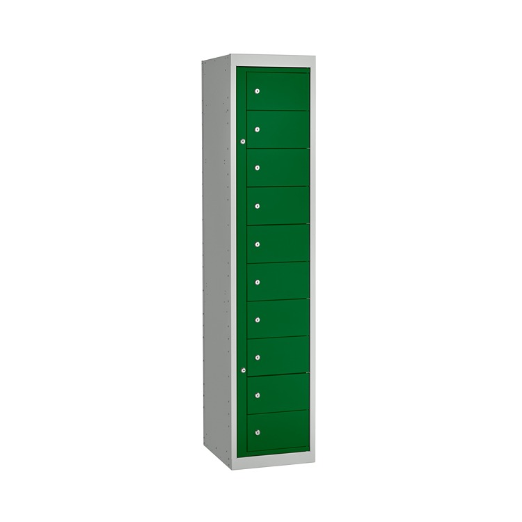 This is 10 Door No Steel Green Light Grey Storage Locker 1778 mm x 381 mm x 457mm manufactured by RS PRO. The manufacturer part number is 213-507. It contains 10 dedicated doors . It has a decent green, light grey colour. The product is made from highly stable and reliable steel. It has an external depth of 457mm. While its external height is 1778 mm. The product is 381 mm wide. In addition, it is vented no .