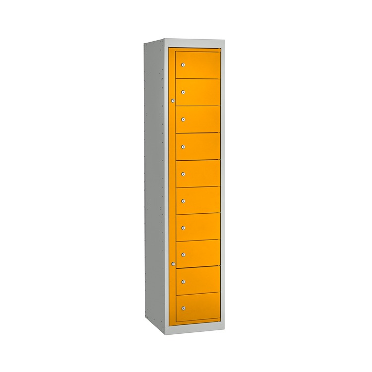 This is 10 Door No Steel Light Grey Yellow Storage Locker 1778 mm x 381 mm x 457mm manufactured by RS PRO. The manufacturer part number is 213-508. It contains 10 dedicated doors . It has a decent light grey, yellow colour. The product is made from highly stable and reliable steel. It has an external depth of 457mm. While its external height is 1778 mm. The product is 381 mm wide. In addition, it is vented no .