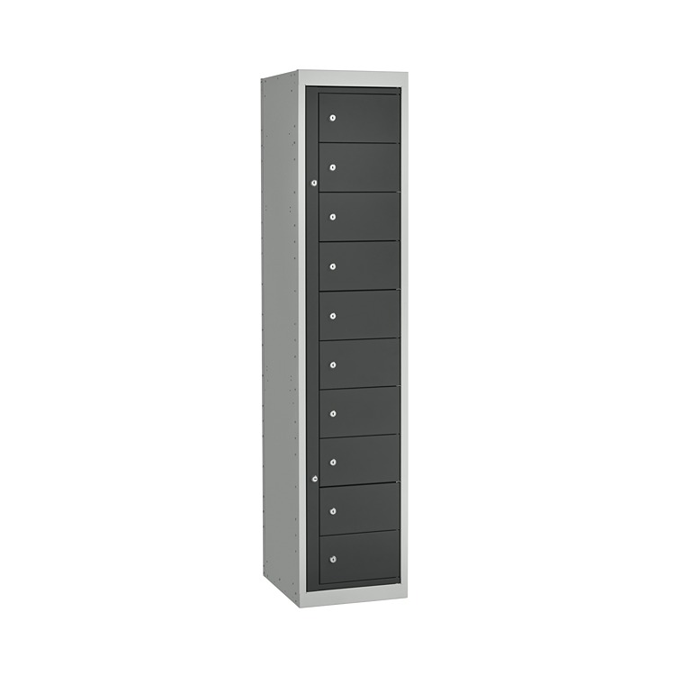 This is 10 Door No Steel Dark Grey Light Grey Storage Locker 1778 mm x 381 mm x 457mm manufactured by RS PRO. The manufacturer part number is 213-510. It contains 10 dedicated doors . It has a decent dark grey, light grey colour. The product is made from highly stable and reliable steel. It has an external depth of 457mm. While its external height is 1778 mm. The product is 381 mm wide. In addition, it is vented no .