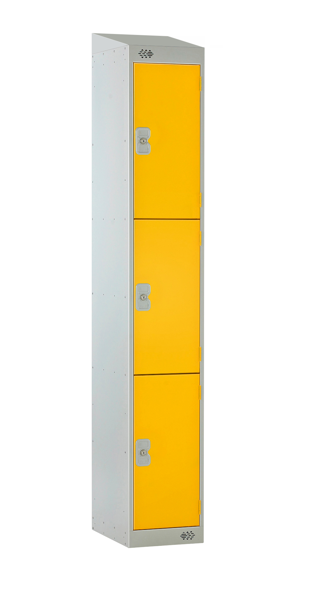 This is 3 Door No Steel Light Grey Yellow Locker 1800 mm x 300 mm x 300mm manufactured by RS PRO. The manufacturer part number is 213-545. It contains 3 dedicated doors . It has a decent light grey, yellow colour. The product is made from highly stable and reliable steel. It has an external depth of 300mm. While its external height is 1800 mm. The product is 300 mm wide. In addition, it is vented no .