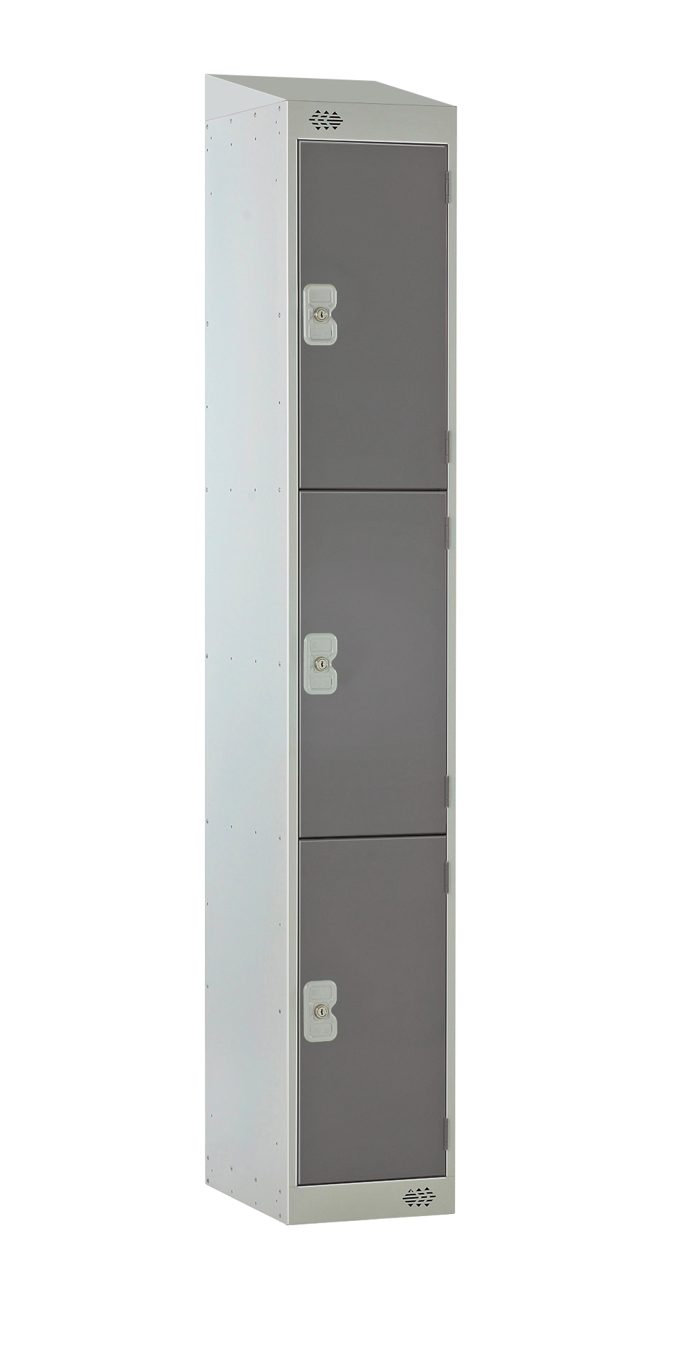 This is 3 Door No Steel Dark Grey Light Grey Storage Locker 1800 mm x 450 mm x 450mm manufactured by RS PRO. The manufacturer part number is 213-570. It contains 3 dedicated doors . It has a decent dark grey, light grey colour. The product is made from highly stable and reliable steel. It has an external depth of 450mm. While its external height is 1800 mm. The product is 450 mm wide. In addition, it is vented no .