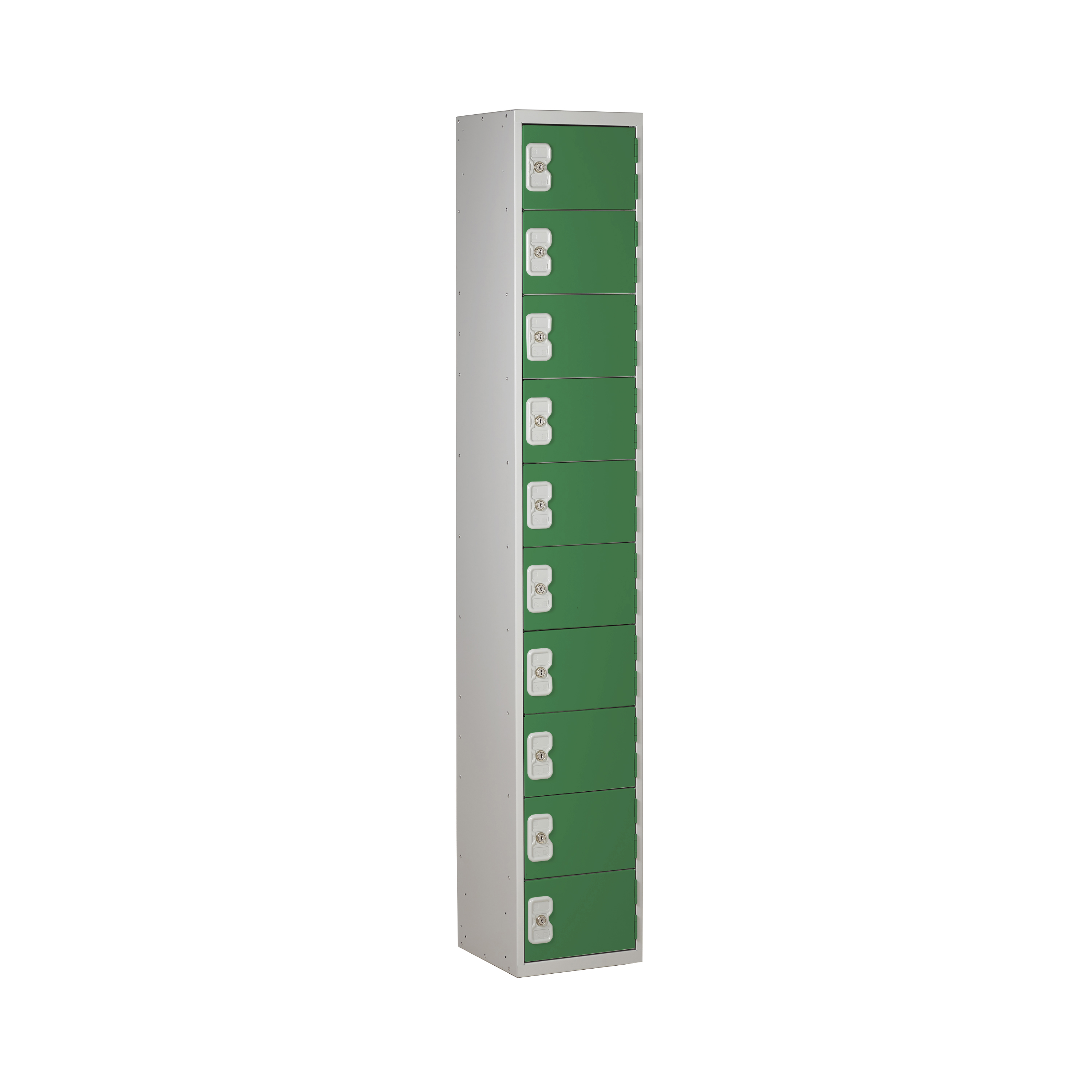 This is 10 Door No Steel Green Locker 1800 mm x 380 mm x 450mm manufactured by RS PRO. The manufacturer part number is 213-705. It contains 10 dedicated doors . It has a decent green colour. The product is made from highly stable and reliable steel. It has an external depth of 450mm. While its external height is 1800 mm. The product is 380 mm wide. In addition, it is vented no .