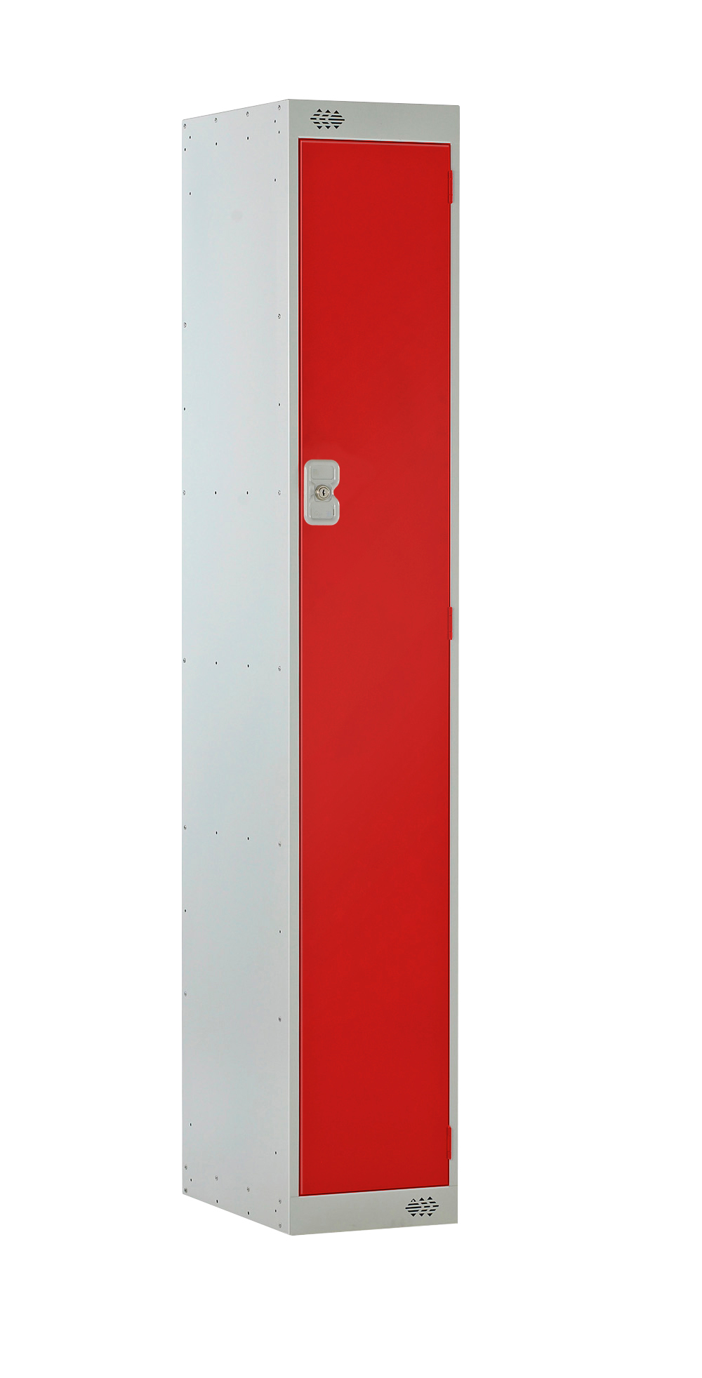 This is 1 Door No Steel Light Grey Red Storage Locker 1800 mm x 450 mm x 450mm manufactured by RS PRO. The manufacturer part number is 213-721. It contains 1 dedicated doors . It has a decent light grey, red colour. The product is made from highly stable and reliable steel. It has an external depth of 450mm. While its external height is 1800 mm. The product is 450 mm wide. In addition, it is vented no .