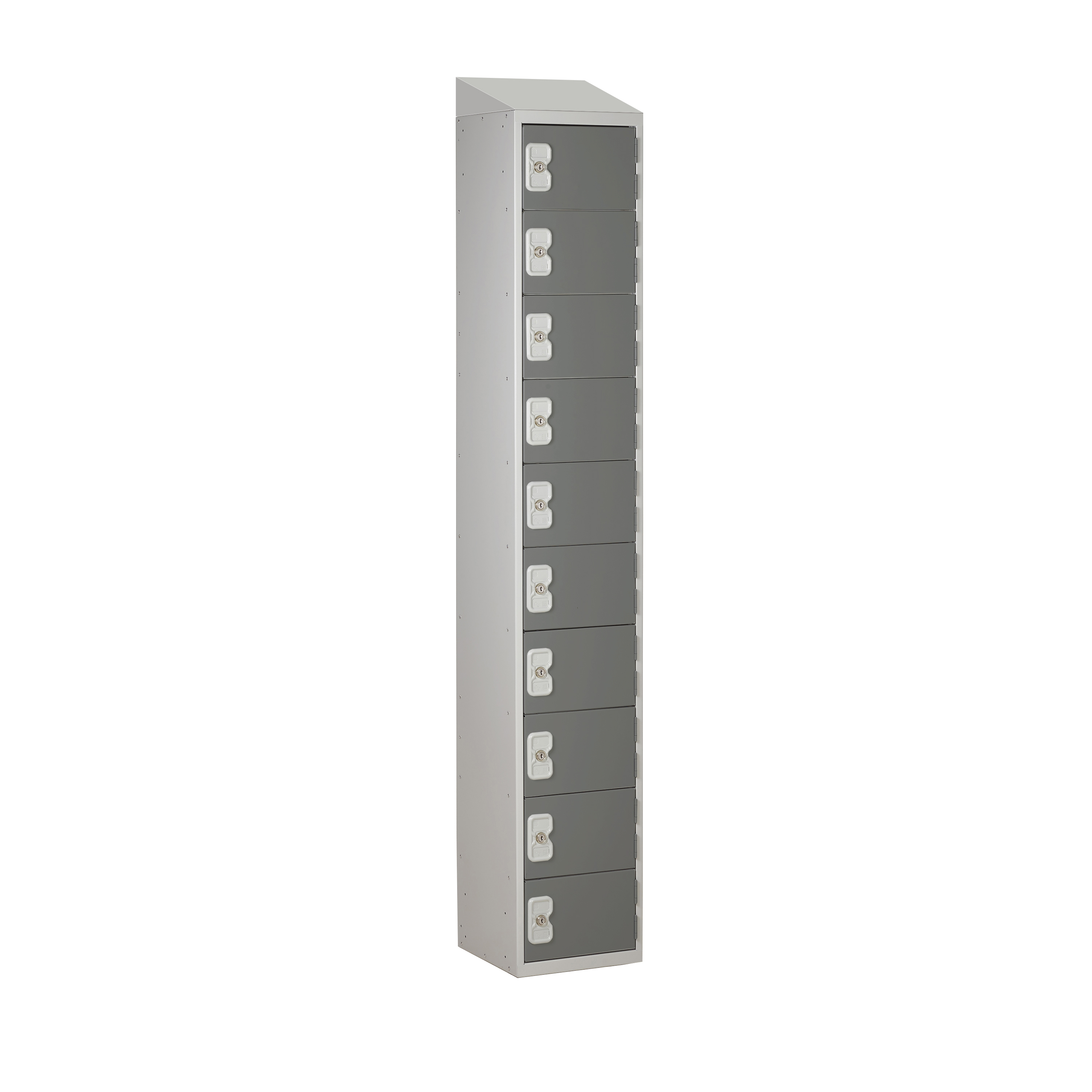 This is 10 Door No Steel Dark Grey Light Grey Locker 1800 mm x 300 mm x 380mm manufactured by RS PRO. The manufacturer part number is 213-823. It contains 10 dedicated doors . It has a decent dark grey, light grey colour. The product is made from highly stable and reliable steel. It has an external depth of 380mm. While its external height is 1800 mm. The product is 300 mm wide. In addition, it is vented no .