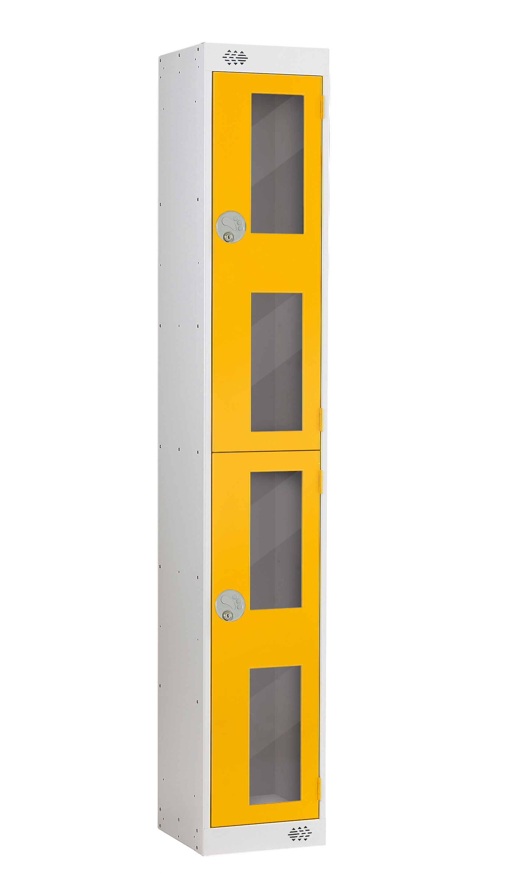 This is 2 Door No Steel Light Grey Yellow Locker 1800 mm x 300 mm x 450mm manufactured by RS PRO. The manufacturer part number is 213-839. It contains 2 dedicated doors . It has a decent light grey, yellow colour. The product is made from highly stable and reliable steel. It has an external depth of 450mm. While its external height is 1800 mm. The product is 300 mm wide. In addition, it is vented no .
