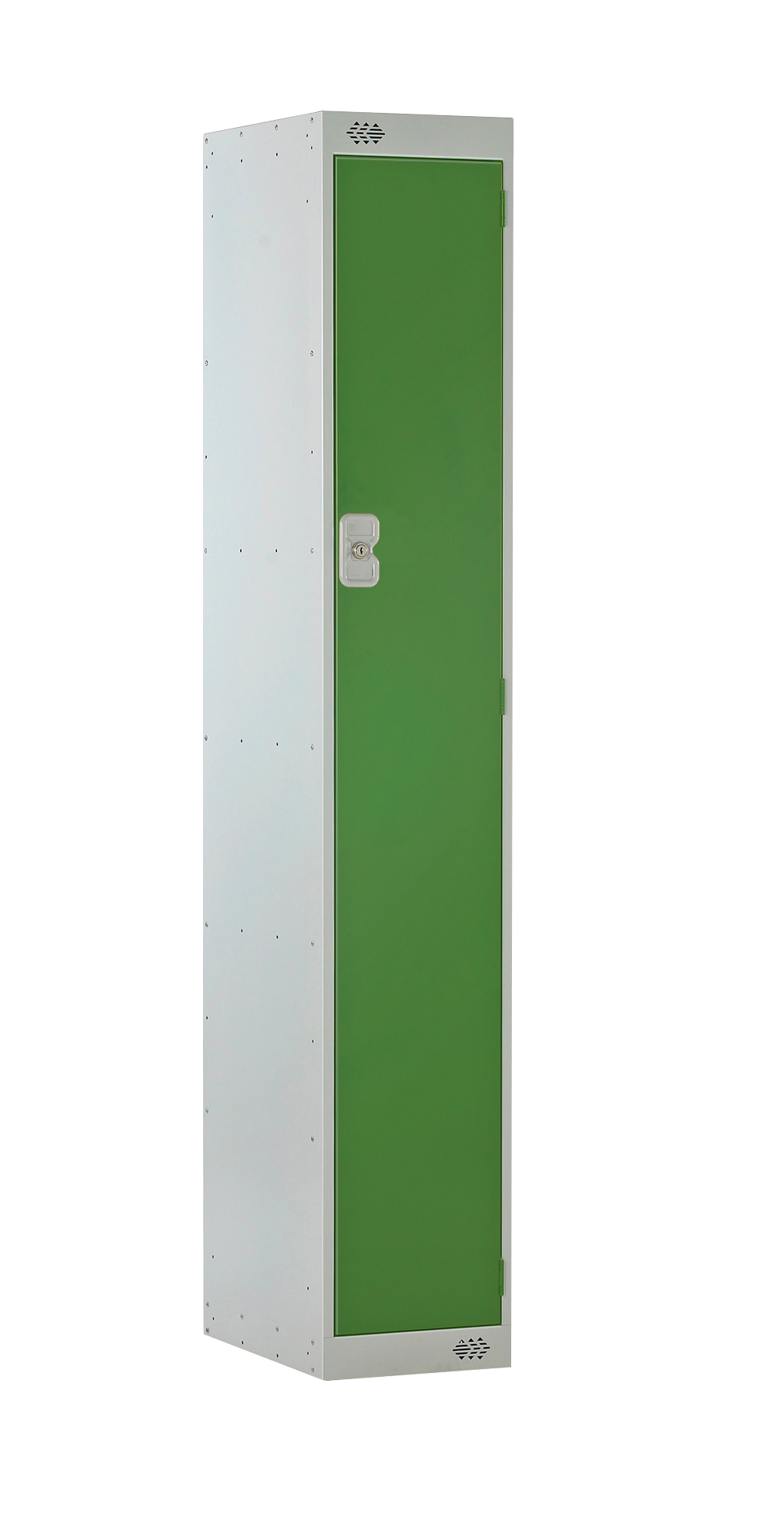This is 1 Door No Steel Green Light Grey Locker 1800 mm x 300 mm x 380mm manufactured by RS PRO. The manufacturer part number is 213-946. It contains 1 dedicated doors . It has a decent green, light grey colour. The product is made from highly stable and reliable steel. It has an external depth of 380mm. While its external height is 1800 mm. The product is 300 mm wide. In addition, it is vented no .