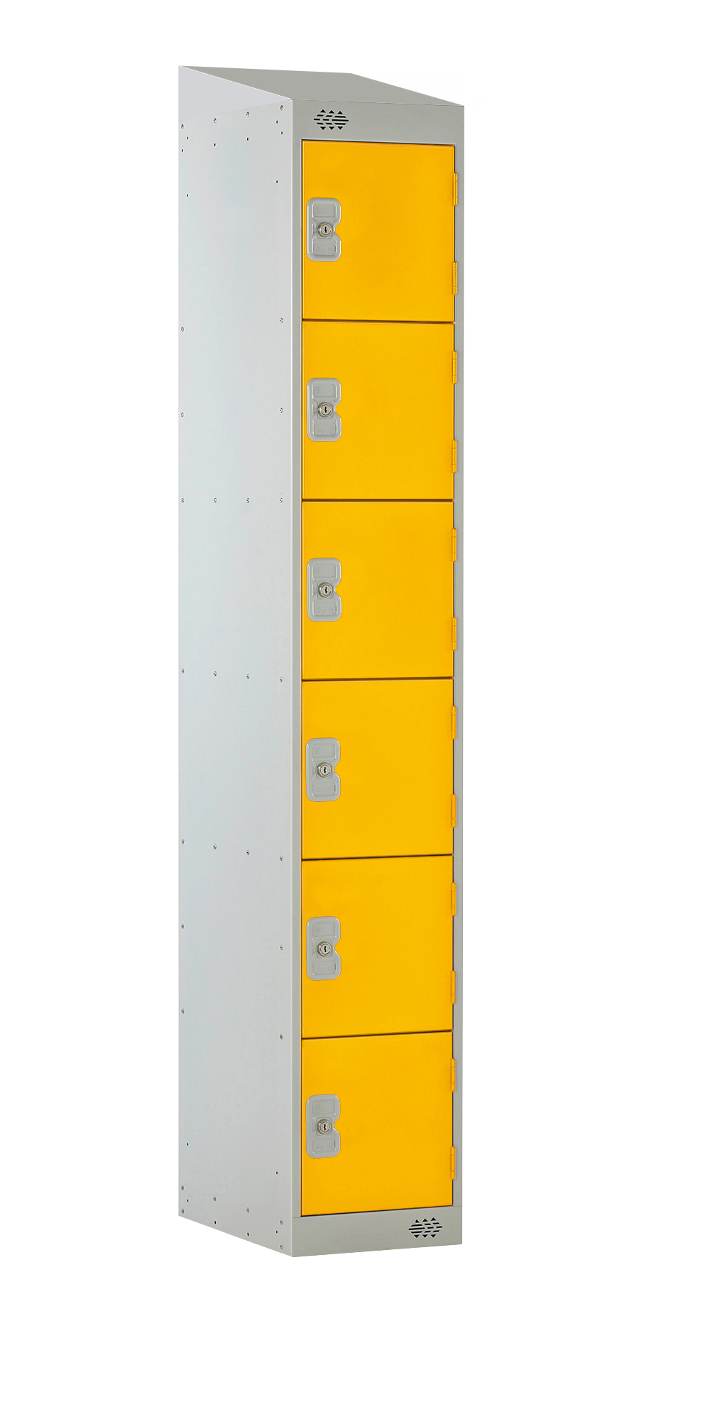 This is 6 Door No Steel Light Grey Yellow Locker 1800 mm x 300 mm x 380mm manufactured by RS PRO. The manufacturer part number is 214-562. It contains 6 dedicated doors . It has a decent light grey, yellow colour. The product is made from highly stable and reliable steel. It has an external depth of 380mm. While its external height is 1800 mm. The product is 300 mm wide. In addition, it is vented no .