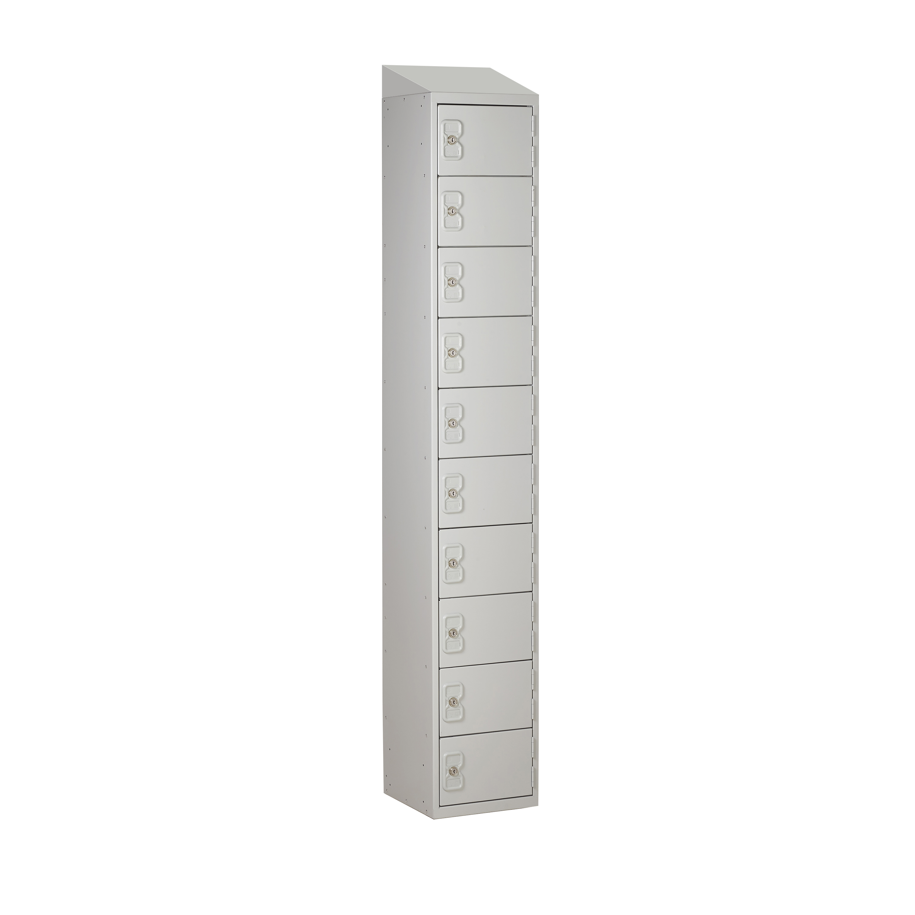 This is 10 Door No Steel Light Grey Locker 1800 mm x 300 mm x 380mm manufactured by RS PRO. The manufacturer part number is 214-575. It contains 10 dedicated doors . It has a decent light grey colour. The product is made from highly stable and reliable steel. It has an external depth of 380mm. While its external height is 1800 mm. The product is 300 mm wide. In addition, it is vented no .