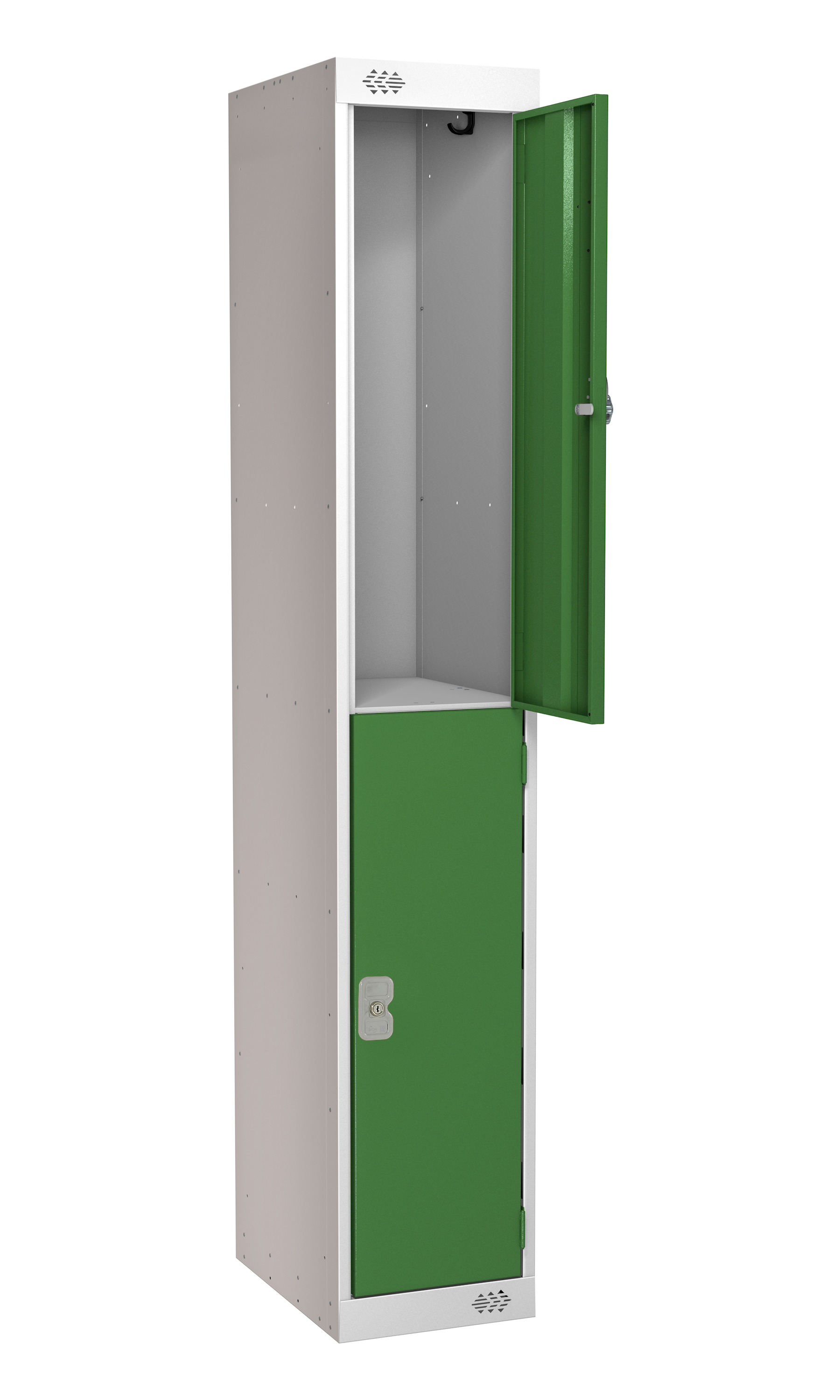 This is 2 Door No Steel Green Light Grey Locker 1800 mm x 300 mm x 380mm manufactured by RS PRO. The manufacturer part number is 214-670. It contains 2 dedicated doors . It has a decent green, light grey colour. The product is made from highly stable and reliable steel. It has an external depth of 380mm. While its external height is 1800 mm. The product is 300 mm wide. In addition, it is vented no .