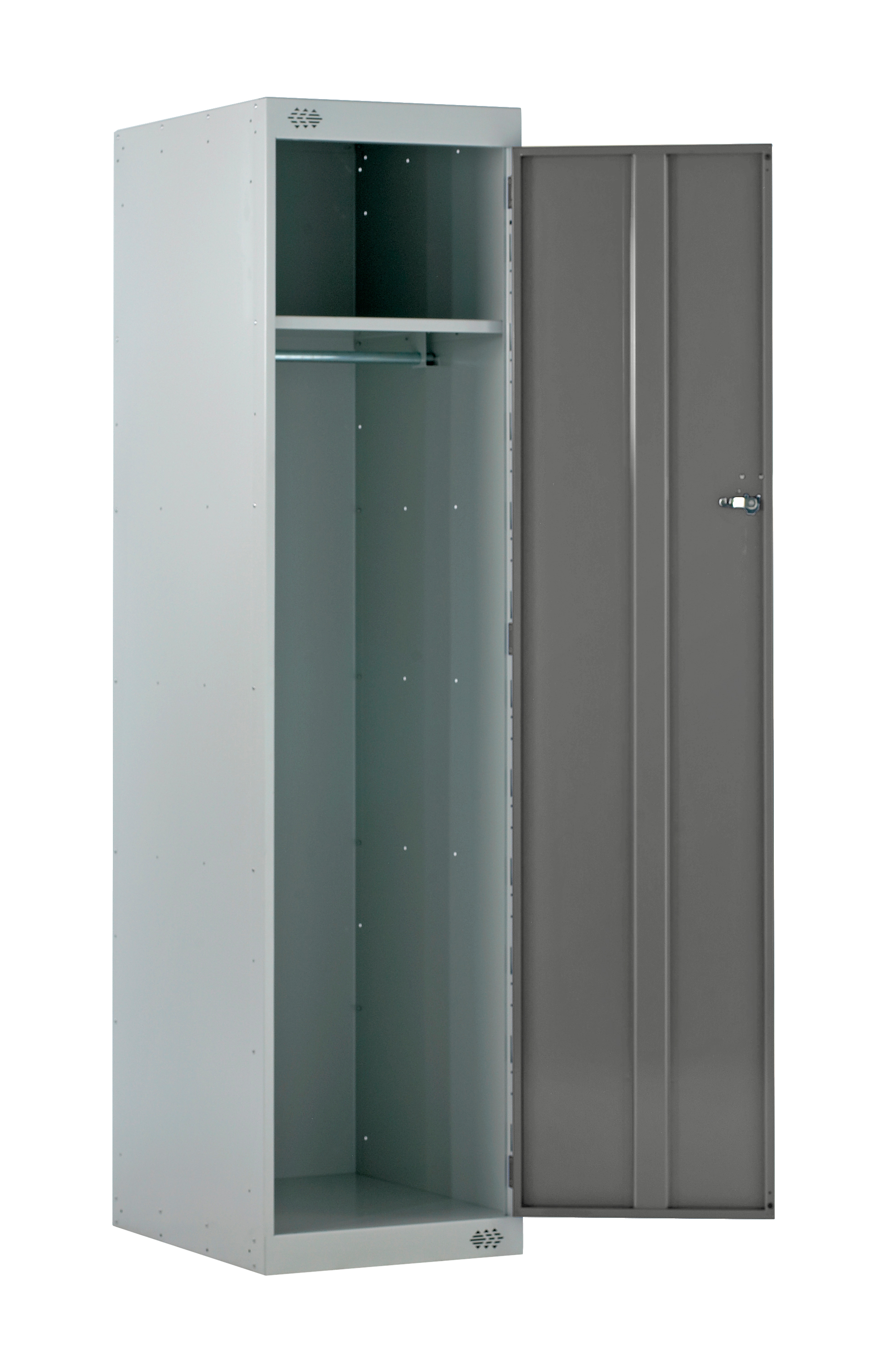 This is 1 Door No Steel Dark Grey Light Grey Storage Locker 1800 mm x 600 mm x 600mm manufactured by RS PRO. The manufacturer part number is 214-686. It contains 1 dedicated doors . It has a decent dark grey, light grey colour. The product is made from highly stable and reliable steel. It has an external depth of 600mm. While its external height is 1800 mm. The product is 600 mm wide. In addition, it is vented no .