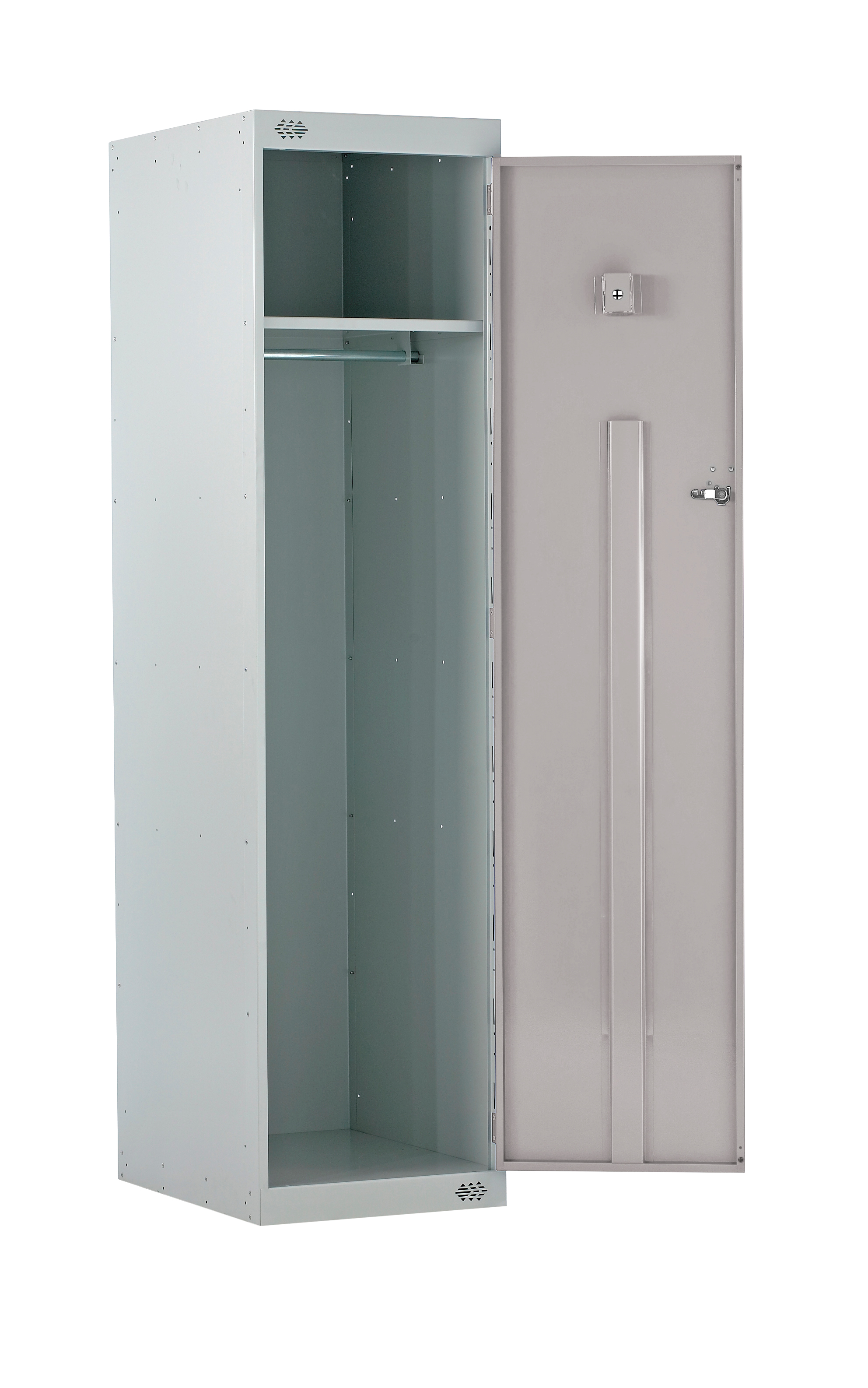 This is 1 Door Steel Light Grey Storage Locker 1800 mm x 600 mm x 600mm manufactured by RS PRO. The manufacturer part number is 214-689. It contains 1 dedicated doors . It has a decent light grey colour. The product is made from highly stable and reliable steel. It has an external depth of 600mm. While its external height is 1800 mm. The product is 600 mm wide.