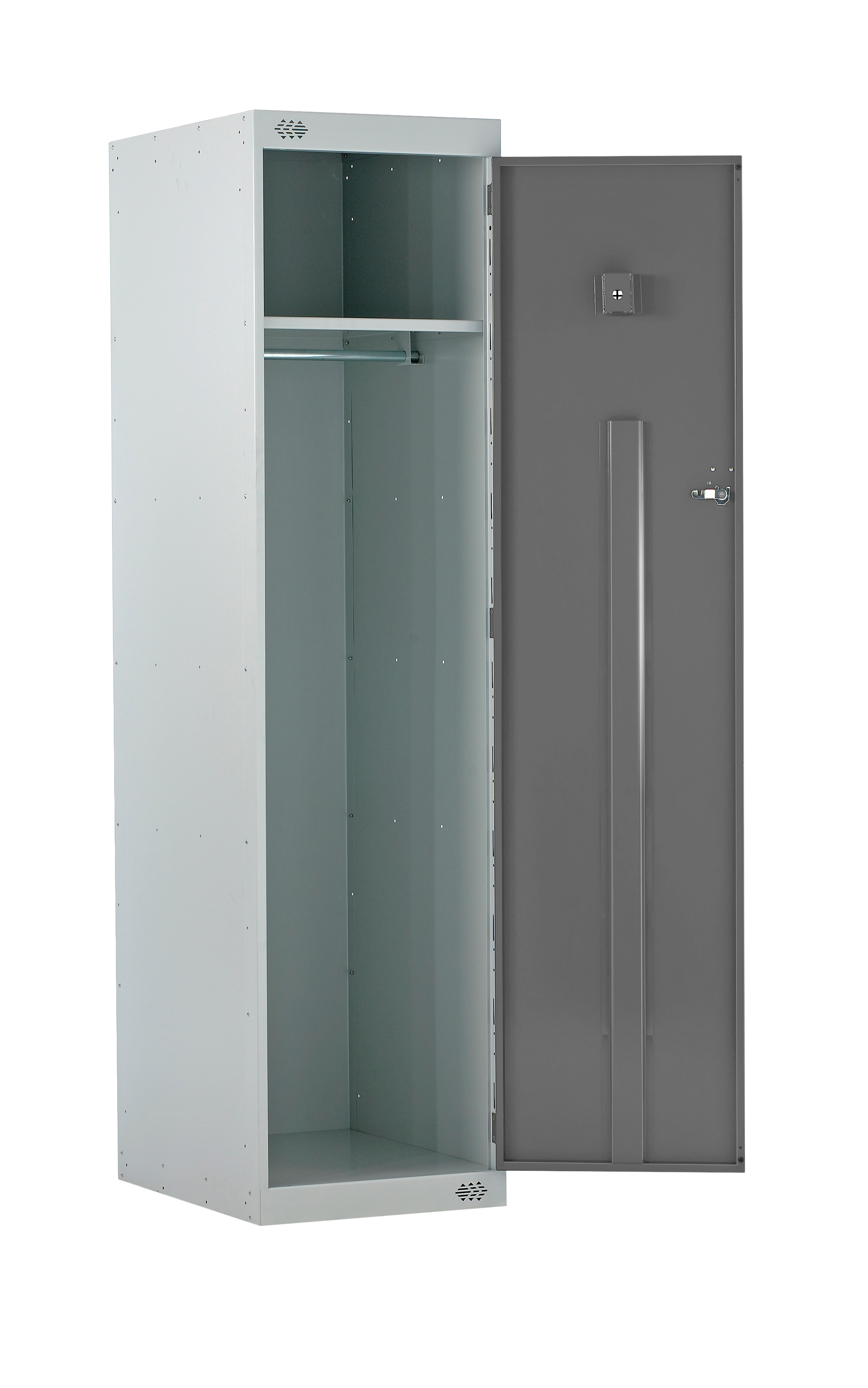 This is 1 Door No Steel Dark Grey Light Grey Storage Locker 1800 mm x 600 mm x 600mm manufactured by RS PRO. The manufacturer part number is 214-695. It contains 1 dedicated doors . It has a decent dark grey, light grey colour. The product is made from highly stable and reliable steel. It has an external depth of 600mm. While its external height is 1800 mm. The product is 600 mm wide. In addition, it is vented no .
