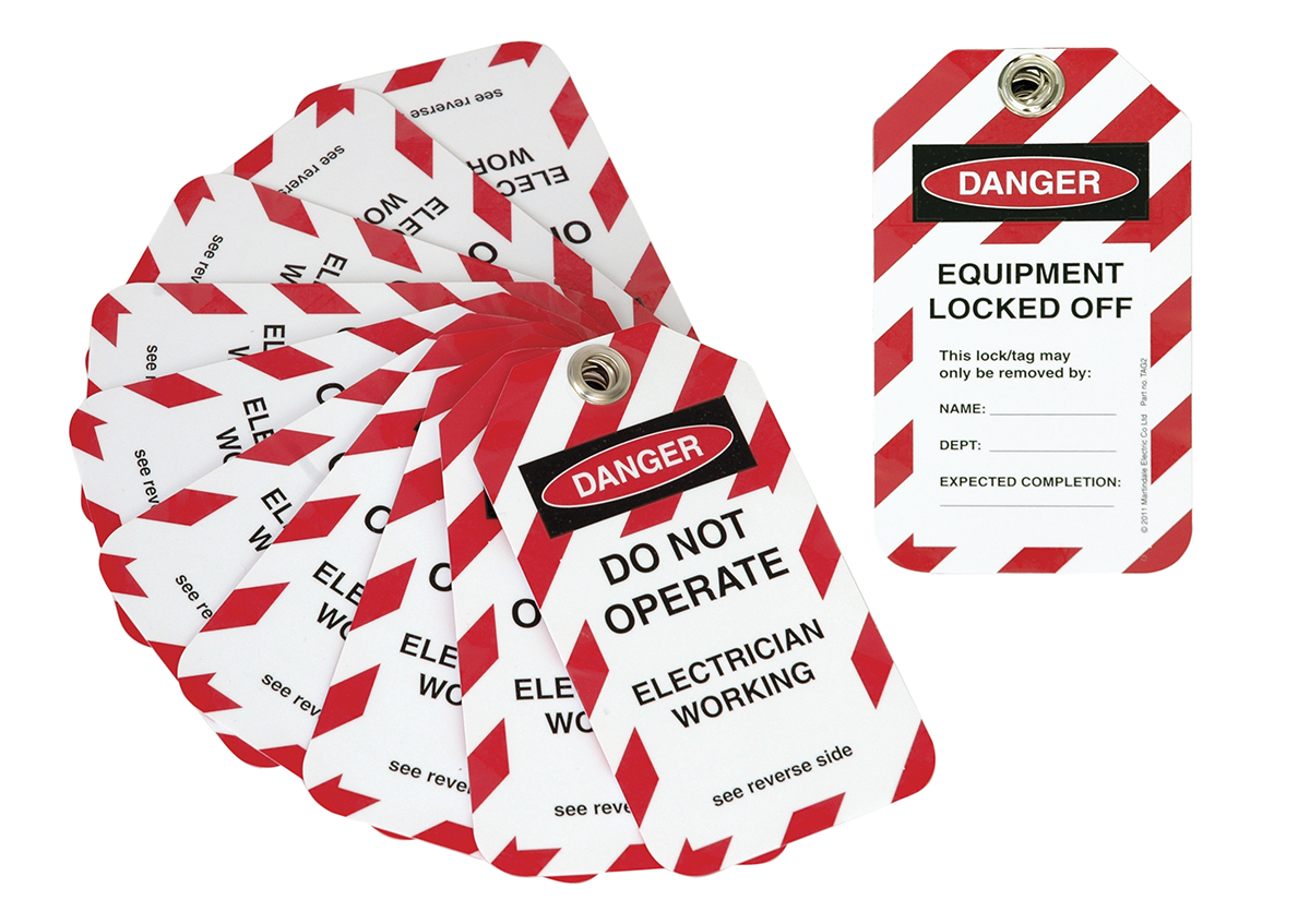 This is 10 x 'Do Not Operate Electrician Working Equipment Locked Off' Lockout Tag manufactured by Martindale. The manufacturer part number is TAG2. Furthermore, the product is 80mm wide. Its accurate length is 140mm. It contains 10 item per package . do not operate, electrician working, equipment locked off is the tag message exhibited by the product .