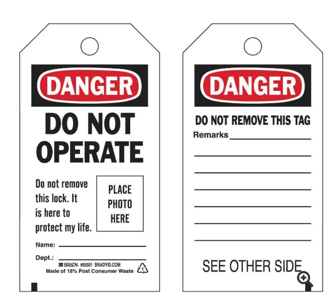 This is 1Each x 'Danger' Lockout Tag manufactured by Brady. The manufacturer part number is B851 5.75X3 BK/RD/WH 2-SIDE 1-FLAP 10/PK. Furthermore, the product is 76mm wide. Its accurate length is 146mm. The product is made from highly stable and reliable polyester. It contains 1each item per package . danger is the tag message exhibited by the product .