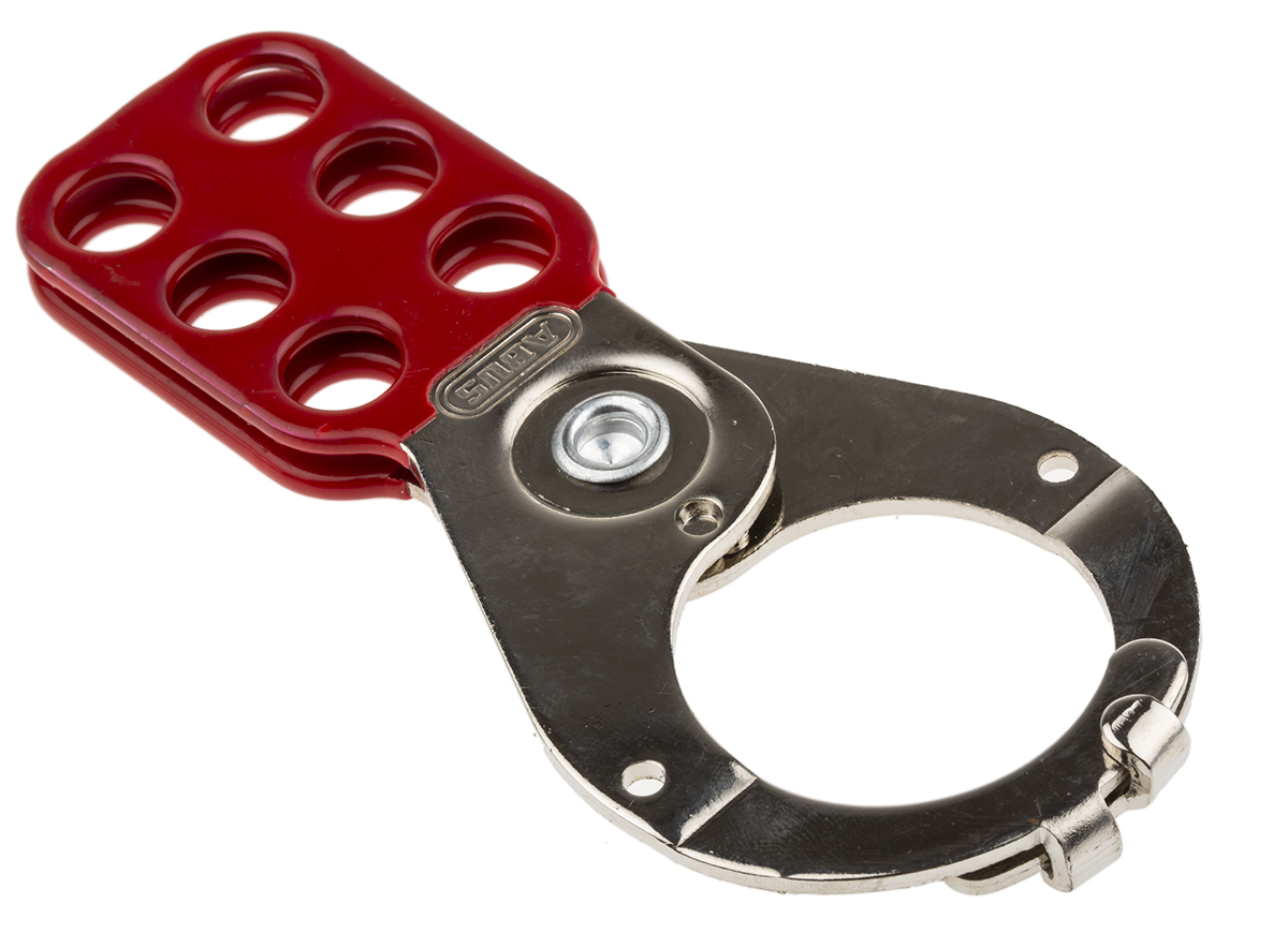 This is 6 Lock Steel Hasp Lockout 38mm Attachment Point manufactured by RS Pro. The manufacturer part number is 805-5500. It includes 6 number of locks . Moreover, it has an attachment point of 38mm maximum size . It has a decent red colour. The product is made from highly stable and reliable steel. It has an attachment point of 9mm of minimum size . Additionally, it has a standard 38mm lock shackle maximum diameter . The product is highly suitable for padlock with maximum 3 mm shackle. It comes in hasp lockout configuration.