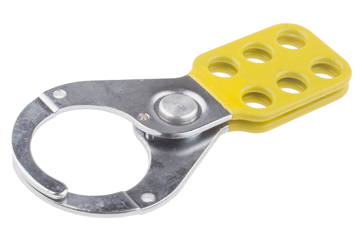 This is 6 Lock 35mm Shackle Vinyl Hasp Lockout manufactured by RS Pro. The manufacturer part number is 818-8098. It includes 6 number of locks . The product has a Risk Type of mechanical risk Moreover, it has an attachment point of 38mm maximum size . It has an attachment point of 10mm of minimum size . It has a decent yellow colour. The product is made from highly stable and reliable steel, yellow vinyl coated. Its shackle is about 38mm in length . Additionally, it has a standard 9.25mm lock shackle maximum diameter . It comes in hasp lockout configuration.