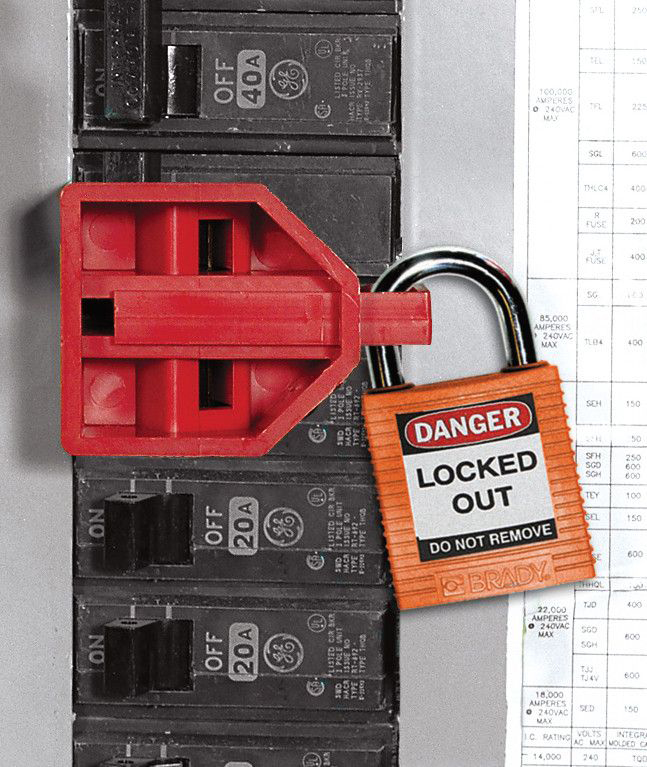 This is Lockout for use with Breaker Lockout manufactured by Brady. The manufacturer part number is 805814. It has a decent red colour.
