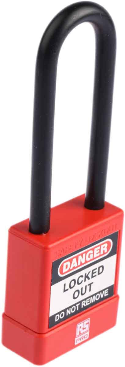 This is Steel Shackle with PVC Sleeve Large manufactured by RS Pro. The manufacturer part number is 175-1183. It includes 1 number of locks . The product has a Risk Type of electrical & mechanical risk Moreover, it has an attachment point of 46mm maximum size . It has a decent red colour. The product is made from highly stable and reliable abs, steel, pvc. Its shackle is about 46mm in length . Additionally, it has a standard 6mm lock shackle maximum diameter . It comes in safety lockout padlocks configuration.