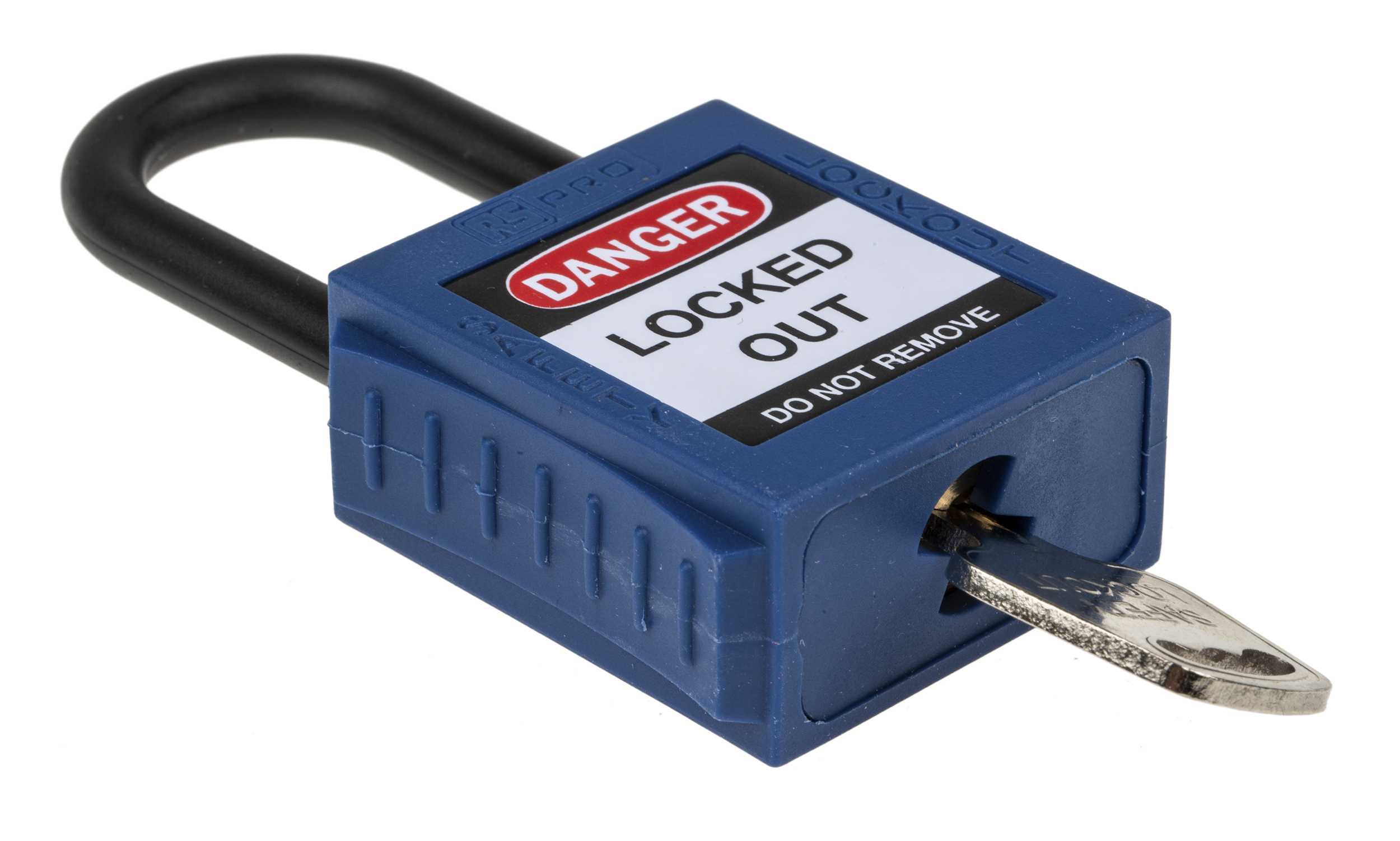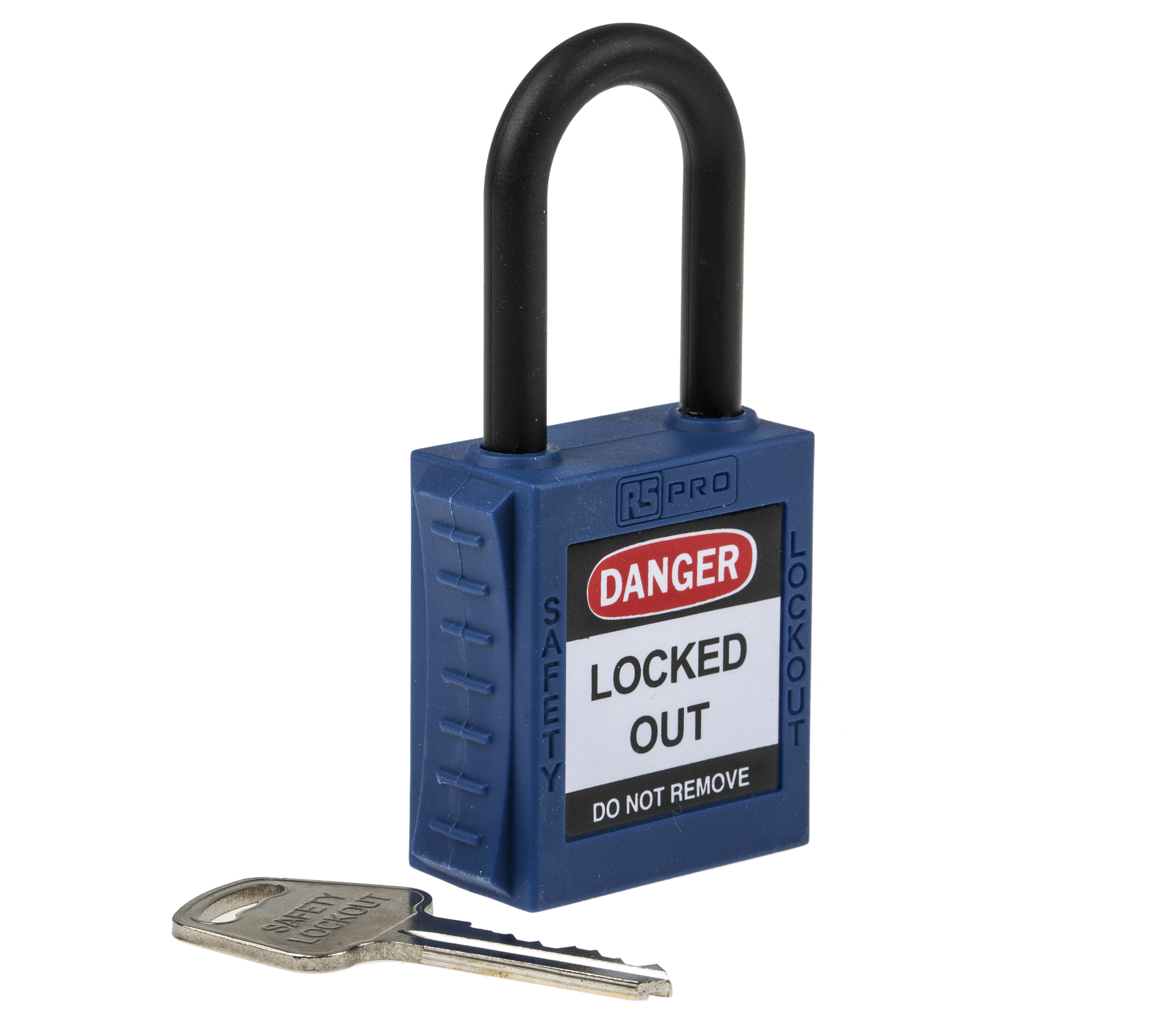 This is All Weather Safety Padlock 38mm manufactured by RS PRO. The manufacturer part number is 196-3759. It includes 1 number of locks . The product has a Risk Type of mechanical It has a decent blue colour. The product is made from highly stable and reliable nylon. Its shackle is about 38mm in length . Additionally, it has a standard 6.35mm lock shackle maximum diameter . The product is highly suitable for lockout device. It comes in safety lockout configuration.