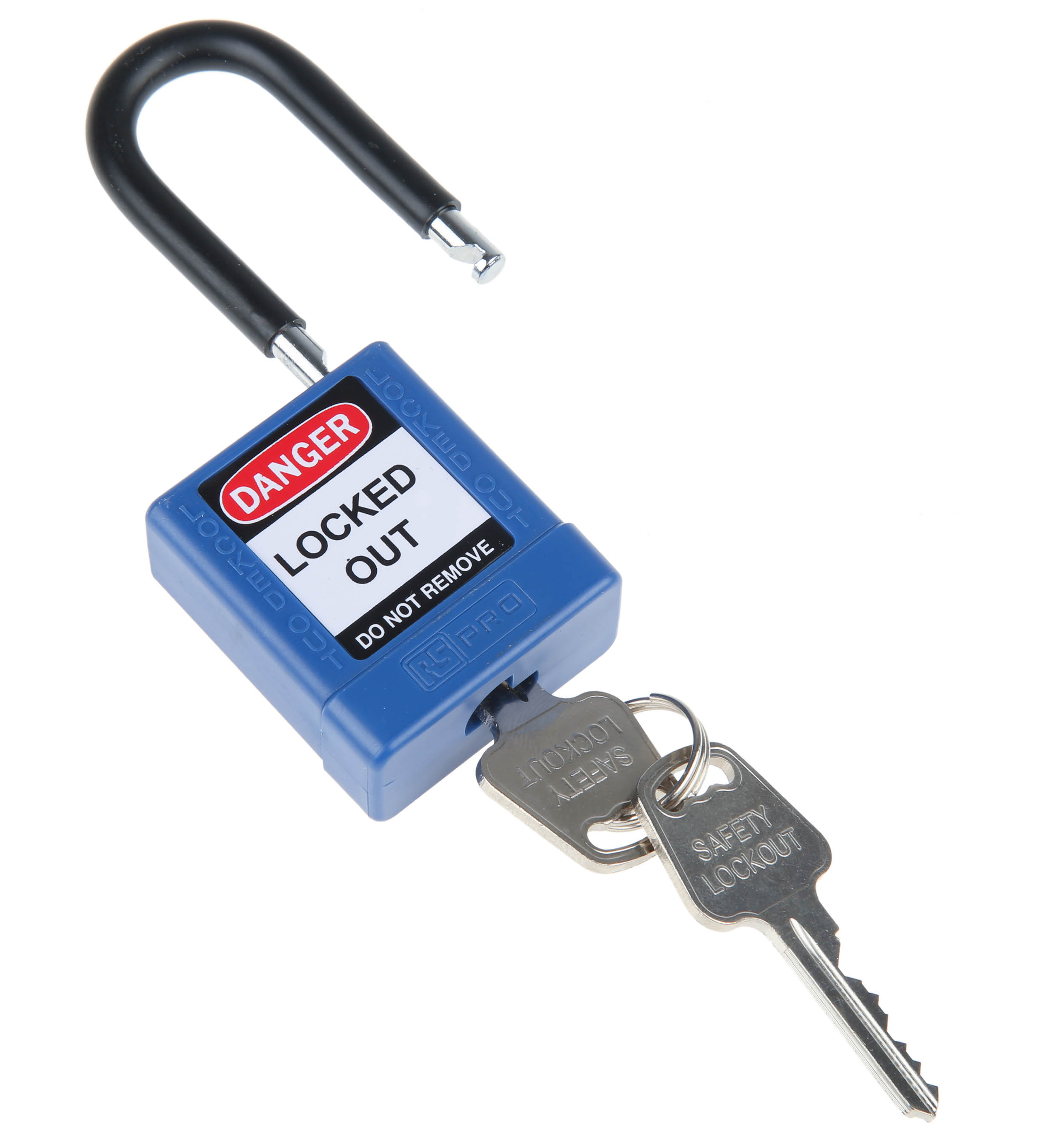 This is All Weather Aluminium Nylon Safety Padlock 38mm manufactured by RS PRO. The manufacturer part number is 196-3764. It includes 1 number of locks . The product has a Risk Type of mechanical It has a decent blue colour. The product is made from highly stable and reliable aluminium, nylon. Its shackle is about 38mm in length . Additionally, it has a standard 6.35mm lock shackle maximum diameter . The product is highly suitable for lockout device. It comes in safety lockout configuration.