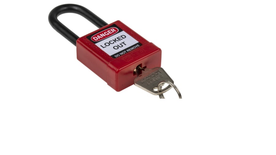 This is All Weather Aluminium Nylon Safety Padlock 38mm manufactured by RS PRO. The manufacturer part number is 196-3765. It includes 1 number of locks . The product has a Risk Type of mechanical It has a decent red colour. The product is made from highly stable and reliable aluminium, nylon. Its shackle is about 38mm in length . Additionally, it has a standard 6.35mm lock shackle maximum diameter . The product is highly suitable for lockout device. It comes in safety lockout configuration.