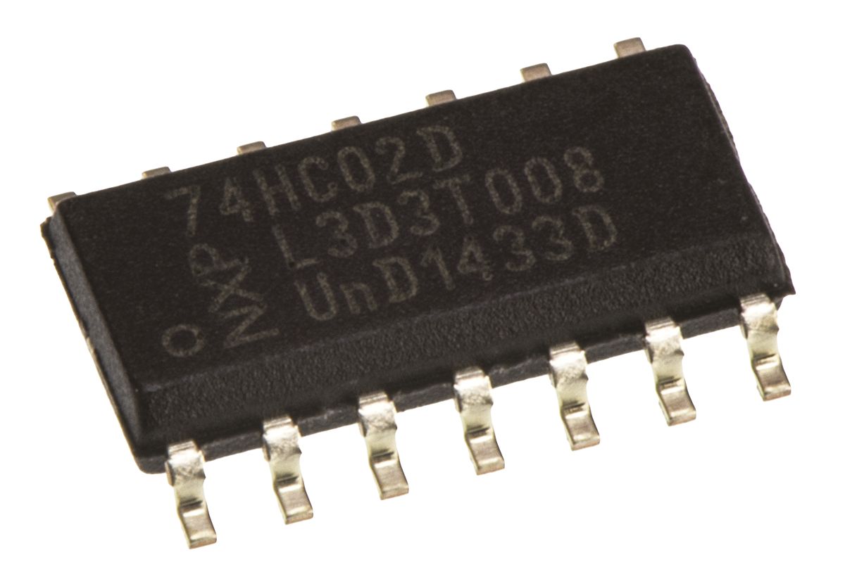This is Quad 2-Input NOR Logic Gate 2 → 6 V 14-Pin SOIC manufactured by Nexperia. The manufacturer part number is 74HC02D,652. The given dimensions of the product include 8.75 x 4 x 1.45mm. The logic family is hc. Furthermore, the product is 4mm wide. It carries cmos input type. On the other hand, it is featured with 5.2ma of max. low level output current. While a -5.2ma of maximum high level output current. It provides up to 15 ns @ 6 v, 18 ns @ 4.5 v, 90 ns @ 2 v maximum propagation delay time. While its minimum operating supply voltage is 2 v. The package is a sort of soic. It has a maximum operating temperature of +125 °c. It contains 2 inputs per gate . Its accurate length is 8.75mm. It contains 14 pins. It has 6 v maximum operating supply voltage. The product is available in surface mount configuration. The primary function of logic includes nor. In addition, the height is 1.45mm. Whereas, the minimum operating temperature of the product is -40 °c. Schmitt Trigger Input - no. It carries 4 elements. Features 50pf of propagation delay test condition.