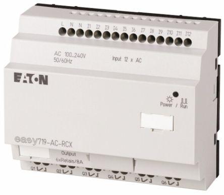 This is EASY Logic Module 100 → 240 V ac 12 x Input 6 x Output Without Display manufactured by Eaton. The manufacturer part number is EASY719-AC-RCX. Additionally, the product is supplied with 6 outputs. The given dimensions of the product include 110 x 107.5 x 58 mm. The product is available in din rail configuration. Whereas, the minimum operating temperature of the product is -25°c. The product easy, is a highly preferred choice for users. It has a/an logic control module type module . Its accurate length is 110mm. Furthermore, it has arelay output. Furthermore, the product is 107.5mm wide. The product comes in 58mm depth. Features 100 → 240 v ac supply voltage. It carries digital input type. The product is designed with a screw termination. It is designed with a typical easynet type network . It has a maximum operating temperature of +55°c. It carries 8 a output current. Display included no . The product consists of 12 inputs.