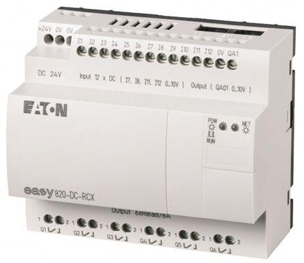 This is Easy 800 Logic Control Without Display EasyNet 12 x Input 1 (Analogue) 6 (Relay) x Output manufactured by Eaton. The manufacturer part number is EASY820-DC-RCX. Additionally, the product is supplied with 7 outputs. It carries 8 a output current. The given dimensions of the product include 110 x 107.5 x 72 mm. The product is available in din rail configuration. Whereas, the minimum operating temperature of the product is -25°c. The product easy, is a highly preferred choice for users. It has a/an logic control module type module . Its accurate length is 110mm. Furthermore, it has arelay output. Furthermore, the product is 107.5mm wide. The product comes in 72mm depth. Features 24 v dc supply voltage. It carries analogue, digital input type. The product is designed with a screw termination. It is designed with a typical easynet type network . It has a maximum operating temperature of +55°c. Discontinued options include 1. Display included no . The product consists of 12 inputs.