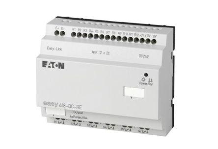 This is EASY Expansion Module 24 V dc 12 x Input 6 x Output With Display manufactured by Eaton. The manufacturer part number is EASY618-DC-RE. Additionally, the product is supplied with 6 outputs. It carries 8 a output current. The product is available in din rail configuration. The product easy, is a highly preferred choice for users. It has a/an i/o extension type module . Furthermore, it has arelay output. Features 24 v dc supply voltage. It carries digital input type. The product is highly suitable for easy 700/800 series. The product is designed with a screw termination. It has a maximum operating temperature of +55°c. Whereas, the minimum operating temperature of the product is -25°c. Display included yes . The product consists of 12 inputs.