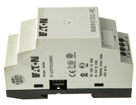 This is EASY Expansion Module 24 V dc 2 x Output Without Display manufactured by Eaton. The manufacturer part number is EASY202-RE. Additionally, the product is supplied with 2 outputs. The given dimensions of the product include 90 x 35.5 x 58 mm. The product is available in din rail configuration. The product easy, is a highly preferred choice for users. It has a/an i/o extension type module . Its accurate length is 90mm. Furthermore, it has arelay output. Furthermore, the product is 35.5mm wide. The product comes in 58mm depth. Features 24 v dc supply voltage. It carries digital input type. The product is highly suitable for easy 700/800 series. The product is designed with a screw termination. It has a maximum operating temperature of +55°c. Whereas, the minimum operating temperature of the product is -25°c. Display included no .