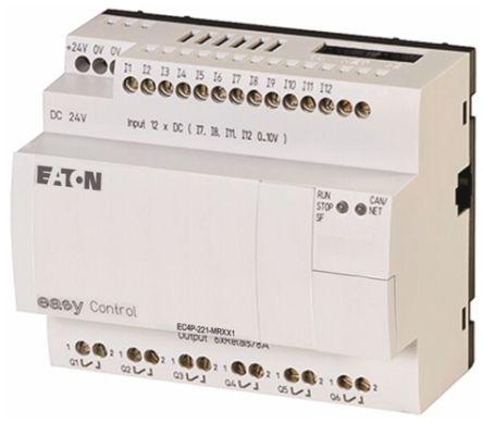 This is EASY Logic Module 24 V dc 12 x Input 6 x Output With Display manufactured by Eaton. The manufacturer part number is EC4P-221-MRXX1. It has about 256 kb program capacity . The given dimensions of the product include 110 x 107.5 x 79 mm. It has a/an logic control module type module . It has a/an rj45 type communication port . Furthermore, the product is 107.5mm wide. Features 24 v dc supply voltage. It carries analogue, digital input type. It is designed with a typical canopen, easynet type network . The product consists of 12 inputs. Furthermore, it has arelay output. It has a maximum operating temperature of +55°c. Additionally, the product is supplied with 6 outputs. The product is designed with a screw termination. Its accurate length is 110mm. The product includes 2 communication ports . It carries 10 a output current. The product is available in din rail configuration. The product easy, is a highly preferred choice for users. The product comes in 79mm depth. Whereas, the minimum operating temperature of the product is -25°c. Display included yes .