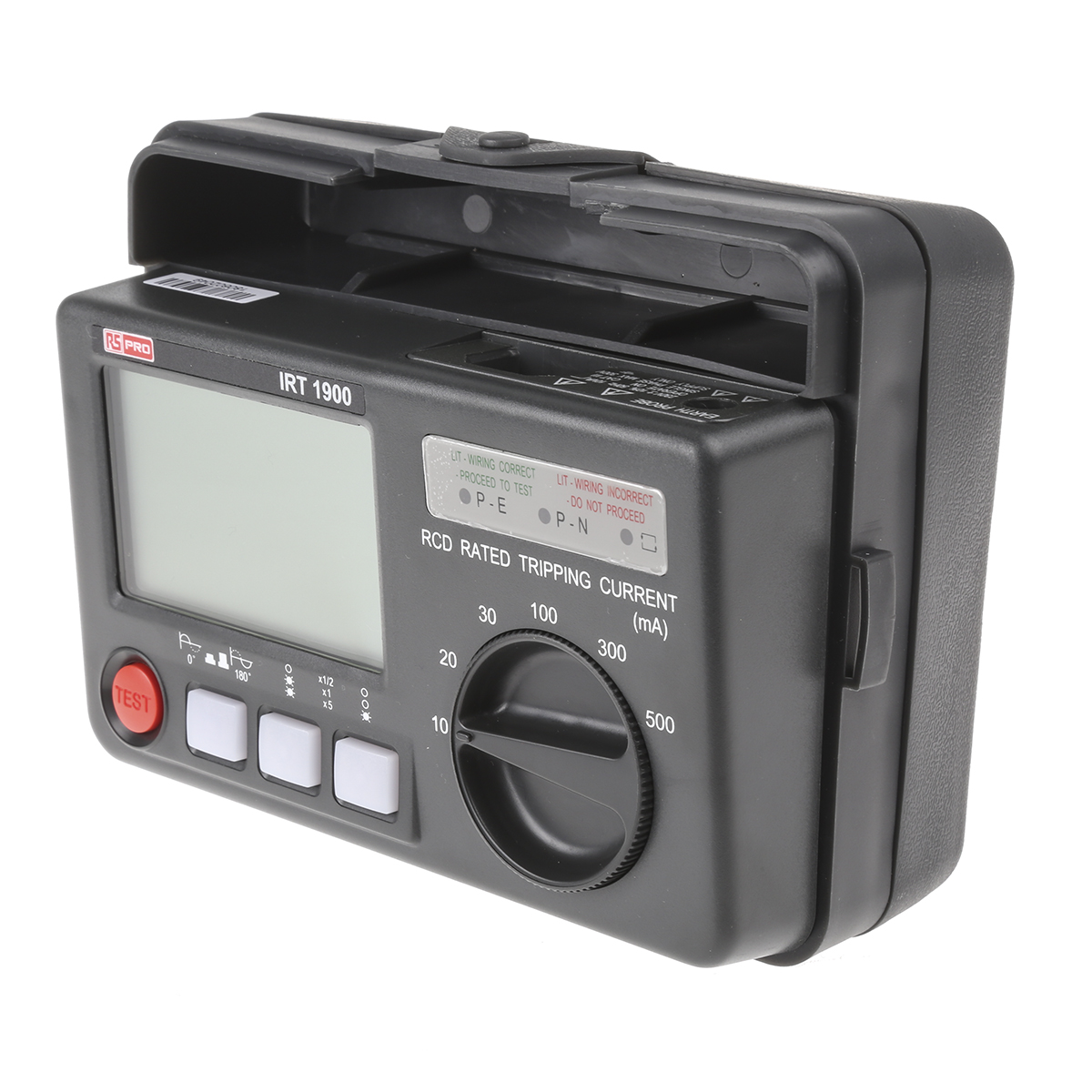 The RS 123-2240 offers advanced capabilities for testing residual current devices (RCDs) across a range of settings, ensuring enhanced electrical safety and compliance. This model stands out for its versatility and precision, featuring selectable trip current settings such as ten mA, 20 mA, 30 mA, 100 mA, 300 mA, and 500 mA AC, which cater to various installation requirements and standards. The tester's digital display provides clear, immediate feedback on RCD performance, including trip time and trip current, facilitating accurate assessments.