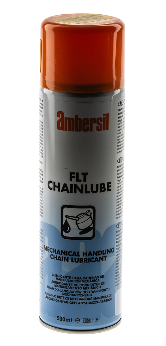 This is Chains Lubricant 500 ml aerosol manufactured by Ambersil. The manufacturer part number is 31614-AB. It is of multi-purpose category . It is assigned with a trade name of flt chain lube. The product is food processing safe no . It has a/an multi purpose type lubricant . Applications Information involves chains, contacts, electrical equipment, gears, metal. The package is a sort of aerosol. Its package size is approximately 500 ml . It comes in multipurpose lubricant configuration.