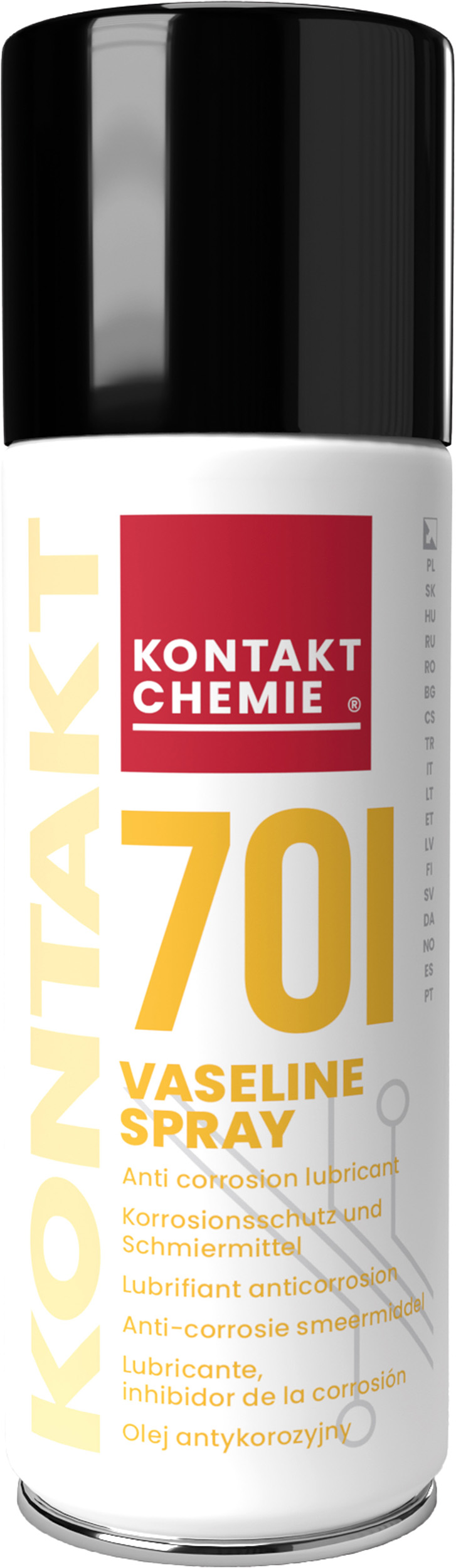 Vaseline - KONTAKT 701 All-purpose vaseline spray grease. Highly viscous lubricating and anti-corrosion agent for screw connections, cable mountings and plug and socket connections. Contact grease for large sliding switches and antenna structures. 200 ml spray.