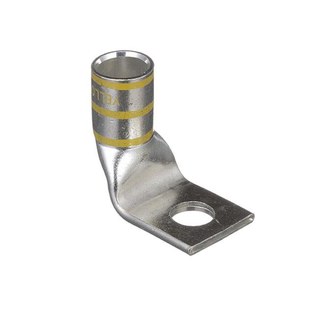 This is manufactured by Panduit Corp. The manufacturer part number is LCAS250-12F-X. It is assigned with possible HTSUS value of 8536.90.4000. The product is rohs3 compliant. Its outer edges are 1.170" (29.72mm) wide. The bespoke tab is 0.140" (3.56mm) thick. The terminal is a rectangular tongue type. It is shipped in bulk package . Moreover, the product has a wire gauge of 250mcm (kcmil). Furthermore, the product is galvanized with excellent electro-tin contact finishing. Its typical moisture sensitivity level is not applicable. It has a 0.530" (13.46mm) ring ID diameter. The product features crimp, barrel termination style. Carries barrel ID diameter of 0.630" (16.00mm) . The product consists of 1/2 stud. The product is available in free hanging (in-line), right angle configuration. It has a classic yellow colour. The product pan-lug™, is a highly preferred choice for users. Features single stud hole terminals. Insulation Option: non-insulated. The product is designated with the ear99 code number. Diameter - Barrel OD of 0.770" (19.56mm) . The product is made from sturdy copper materials.