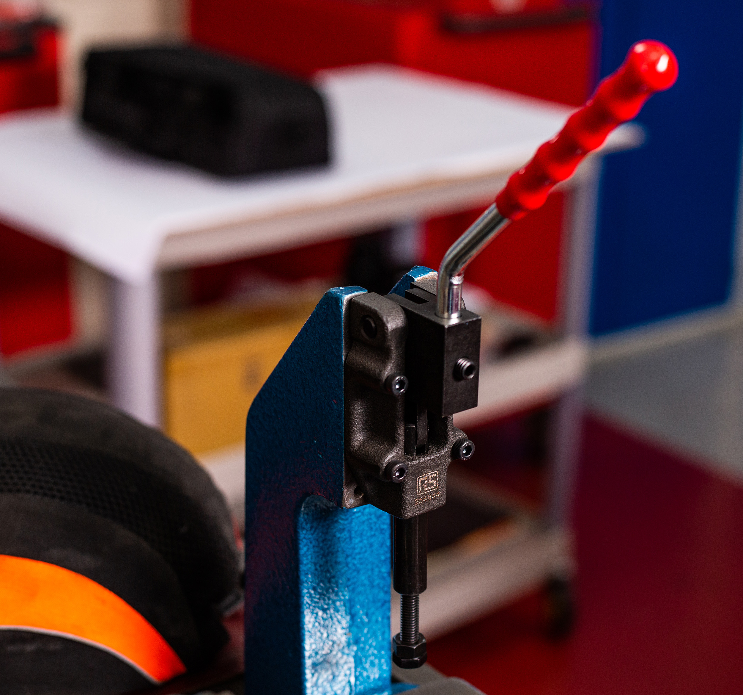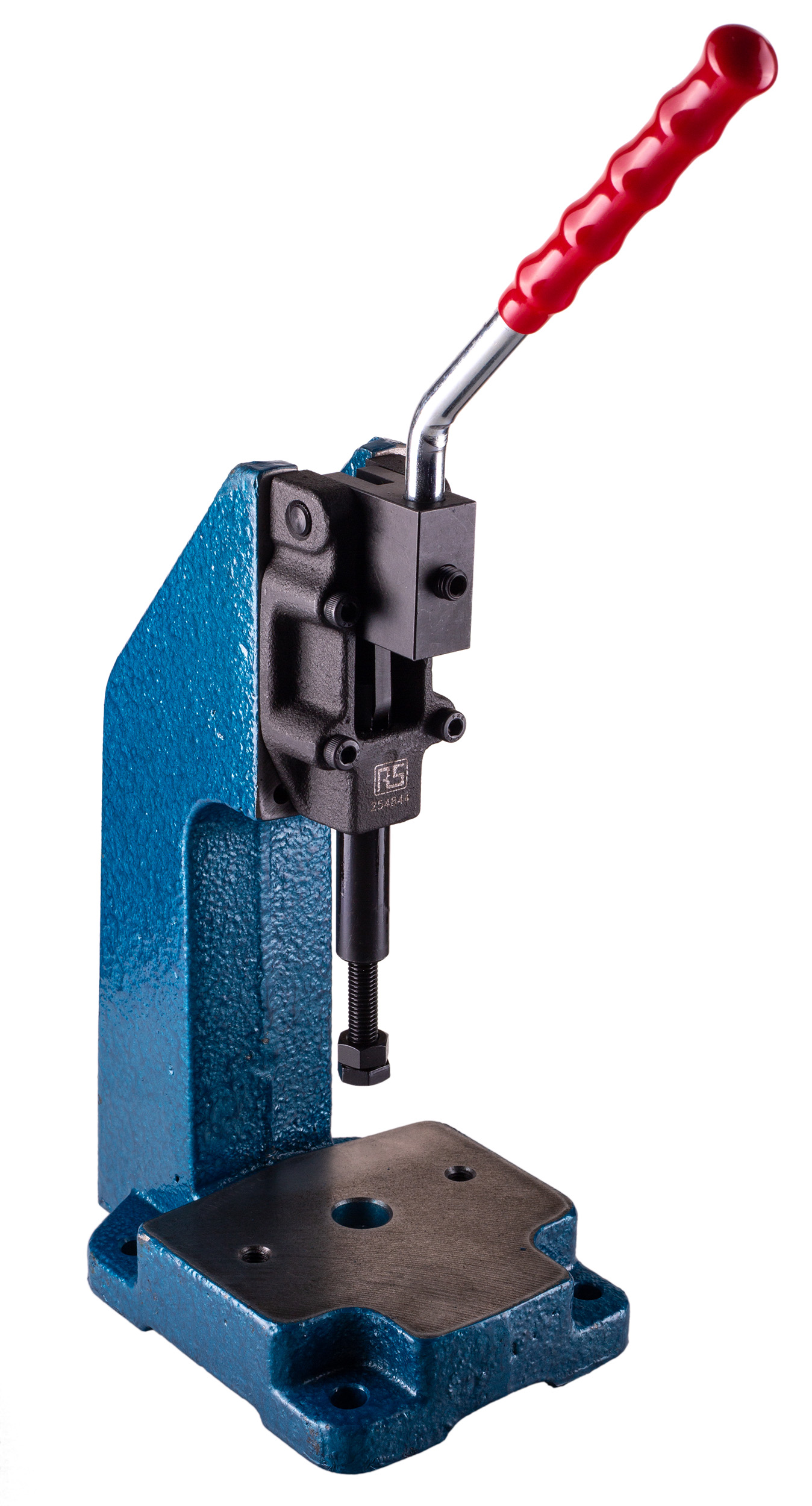 This is 0.6T Manual Toggle Machine Press manufactured by RS Pro. The manufacturer part number is 254-844. Its output pressure is about 0.6t . It comes in manual toggle press configuration.