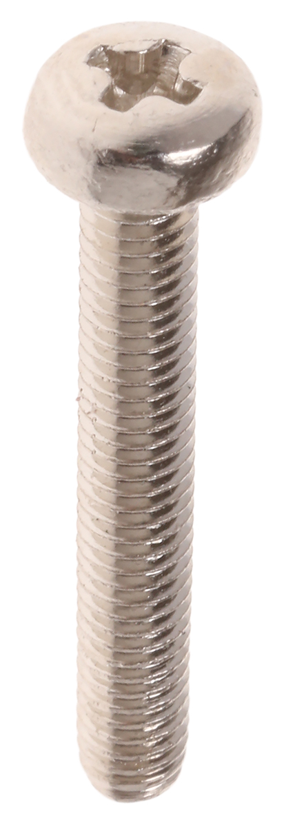 This is Pozidriv Pan Head Machine Screw Brass Nickel Plated M3 x 20mm manufactured by RS Pro. The manufacturer part number is 483-0120. A quality product with a nice nickel plated finish. The product is built with a standard m3 thread size metric . The product complies with all safety standards, such as din 7985. The head has a pan shape. The product features a pozi drive. The product is made from highly stable and reliable brass. Furthermore, it has about 20mm metric length . Furthermore, the pitch of the thread is 0.5mm.