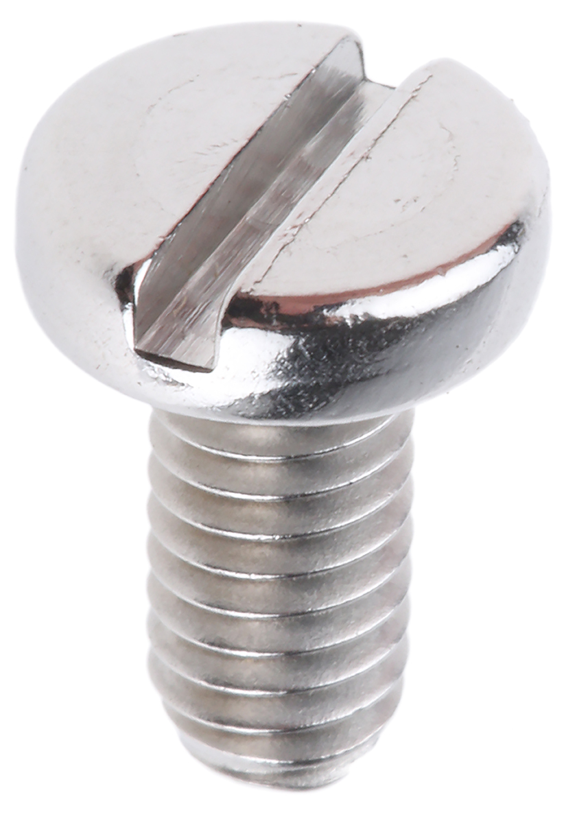 This is Slot Pan Head Machine Screw Stainless Steel A4 316 M4 x 8mm manufactured by RS Pro. The manufacturer part number is 189-361. The head has a pan shape. The product complies with all safety standards, such as din 85. The product is built with a standard m4 thread size metric . The product features a slot drive. The product is made from highly stable and reliable stainless steel. The stainless steel is a a4 316. Furthermore, it has about 8mm metric length . Furthermore, the pitch of the thread is 0.7mm.