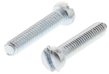 This is Slot Pan Head Machine Screw Steel Bright Zinc Plated M2.5 x 12mm manufactured by RS Pro. The manufacturer part number is 560-732. A quality product with a nice bright zinc plated finish. The product is built with a standard m2.5 thread size metric . The head has a pan shape. The product features a slot drive. The product is made from highly stable and reliable steel. Furthermore, it has about 12mm metric length . Furthermore, the pitch of the thread is 0.45.