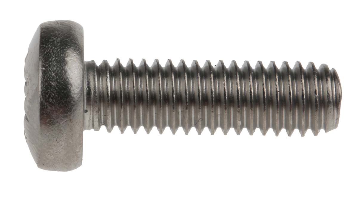 This is Cross Pan Head Machine Screw Stainless Steel A4 316 M6 x 20mm manufactured by RS Pro. The manufacturer part number is 190-614. The head has a pan shape. The product complies with all safety standards, such as din 7985. The product is built with a standard m6 thread size metric . The product features a pozi drive. The product is made from highly stable and reliable stainless steel. The stainless steel is a a4 316. Furthermore, it has about 20.0mm metric length . Furthermore, the pitch of the thread is 1.0mm.