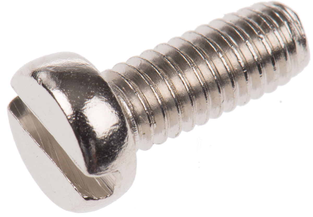 This is Slot Cheese Head Machine Screw Brass Nickel Plated M4 x 10mm manufactured by RS Pro. The manufacturer part number is 482-9833. A quality product with a nice nickel plated finish. The product is built with a standard m4 thread size metric . The product complies with all safety standards, such as din 84. The head has a cheese shape. The product features a slot drive. The product is made from highly stable and reliable brass. Furthermore, it has about 10.0mm metric length . Furthermore, the pitch of the thread is 0.70mm.
