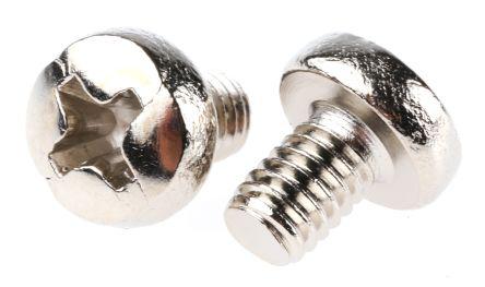 This is Cross Pan Head Machine Screw Brass Nickel Plated M4 x 6mm manufactured by RS Pro. The manufacturer part number is 483-0158. A quality product with a nice nickel plated finish. The product is built with a standard m4 thread size metric . The head has a pan shape. The product features a cross drive. The product is made from highly stable and reliable brass. Furthermore, it has about 6mm metric length . Furthermore, the pitch of the thread is 0.7mm.