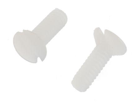 This is Plain Nylon Flat Head Machine Screws M2 x 6mm manufactured by RS Pro. The manufacturer part number is 291-284. A quality product with a nice plain finish. The product is built with a standard m2 thread size metric . The head has a countersunk shape. The product features a slot drive. The product is made from highly stable and reliable nylon. Furthermore, it has about 6mm metric length . Furthermore, the pitch of the thread is 0.4mm.