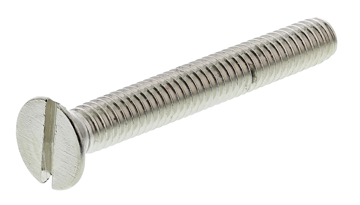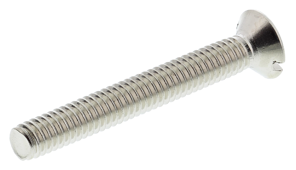 This is Nickel Plated Brass Flat Head Machine Screws M4 x 30mm manufactured by RS Pro. The manufacturer part number is 482-9322. A quality product with a nice nickel plated finish. The product is built with a standard m4 thread size metric . The product complies with all safety standards, such as din 963. The head has a countersunk shape. The product features a slot drive. The product is made from highly stable and reliable brass. Furthermore, it has about 30.0mm metric length . Furthermore, the pitch of the thread is 0.70mm.
