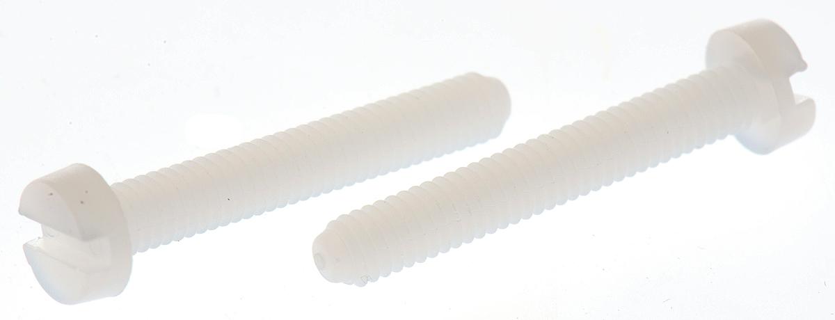 This is Slot Cheese Head Machine Screw Nylon Plain M4 x 25mm manufactured by RS Pro. The manufacturer part number is 527-713. A quality product with a nice plain finish. The product is built with a standard m4 thread size metric . The head has a cheese shape. The product features a slot drive. The product is made from highly stable and reliable nylon. Furthermore, it has about 25mm metric length . Furthermore, the pitch of the thread is 0.7mm.