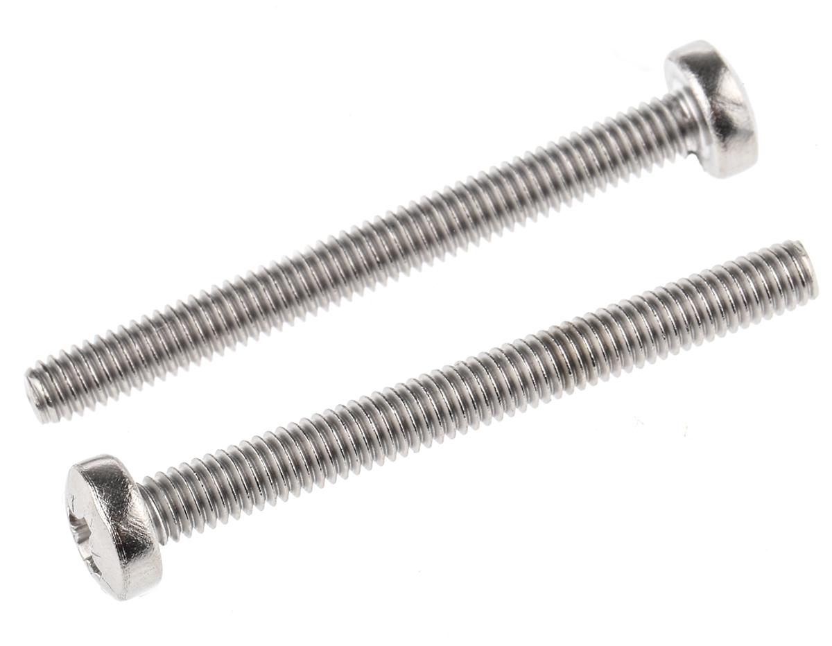 This is Plain Stainless Steel Pan Head Machine Screws M4 x 40mm manufactured by RS Pro. The manufacturer part number is 797-6200. The head has a pan shape. The product complies with all safety standards, such as din 7985. The product is built with a standard m4 thread size metric . The product features a pozi drive. The product is made from highly stable and reliable stainless steel. The stainless steel is a a2 304. Furthermore, it has about 40mm metric length . Furthermore, the pitch of the thread is 0.7mm.