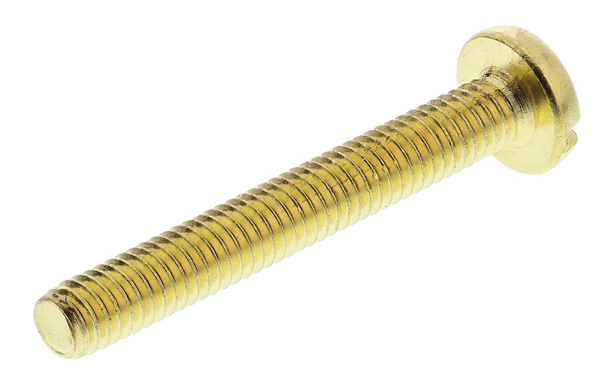 This is Slot Pan Head Machine Screw Brass M4 x 30mm manufactured by RS Pro. The manufacturer part number is 483-1561. A quality product with a nice plain finish. The product is built with a standard m4 thread size metric . The product complies with all safety standards, such as din 85. The head has a pan shape. The product features a slot drive. The product is made from highly stable and reliable brass. Furthermore, it has about 30mm metric length . Furthermore, the pitch of the thread is 0.7mm.