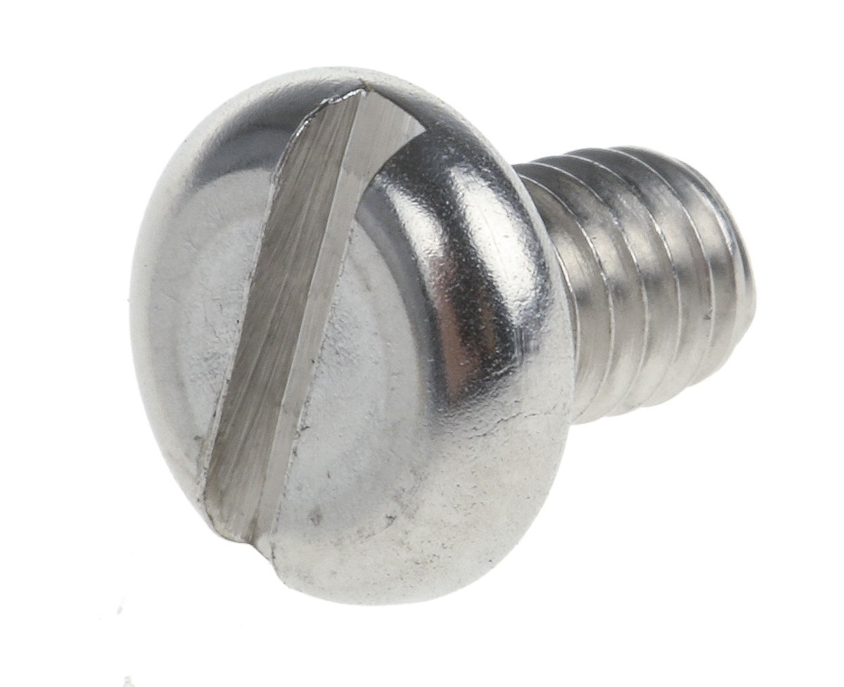 This is Slot Pan Head Machine Screw Stainless Steel A4 316 M4 6mm manufactured by RS Pro. The manufacturer part number is 189-355. The head has a pan shape. The product complies with all safety standards, such as din 85. The product is built with a standard m4 thread size metric . The product features a slot drive. The product is made from highly stable and reliable stainless steel. The stainless steel is a a4 316. Furthermore, it has about 6mm metric length . Furthermore, the pitch of the thread is 0.7mm.